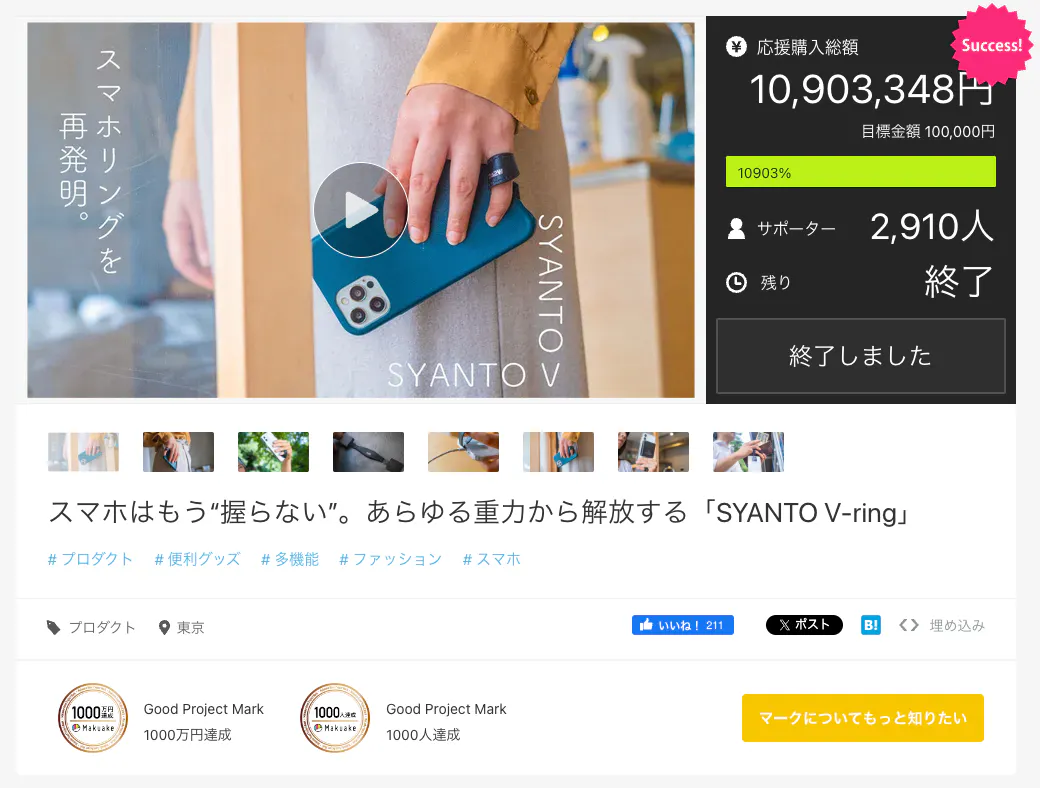 SYANTOはこれまでにMakuake、CAMPFIRE、米国kickstarter、Amazonで累計1.7万人以上の方から支援をいただき、多くの方のスマホ操作の悩み解決に貢献してきました。