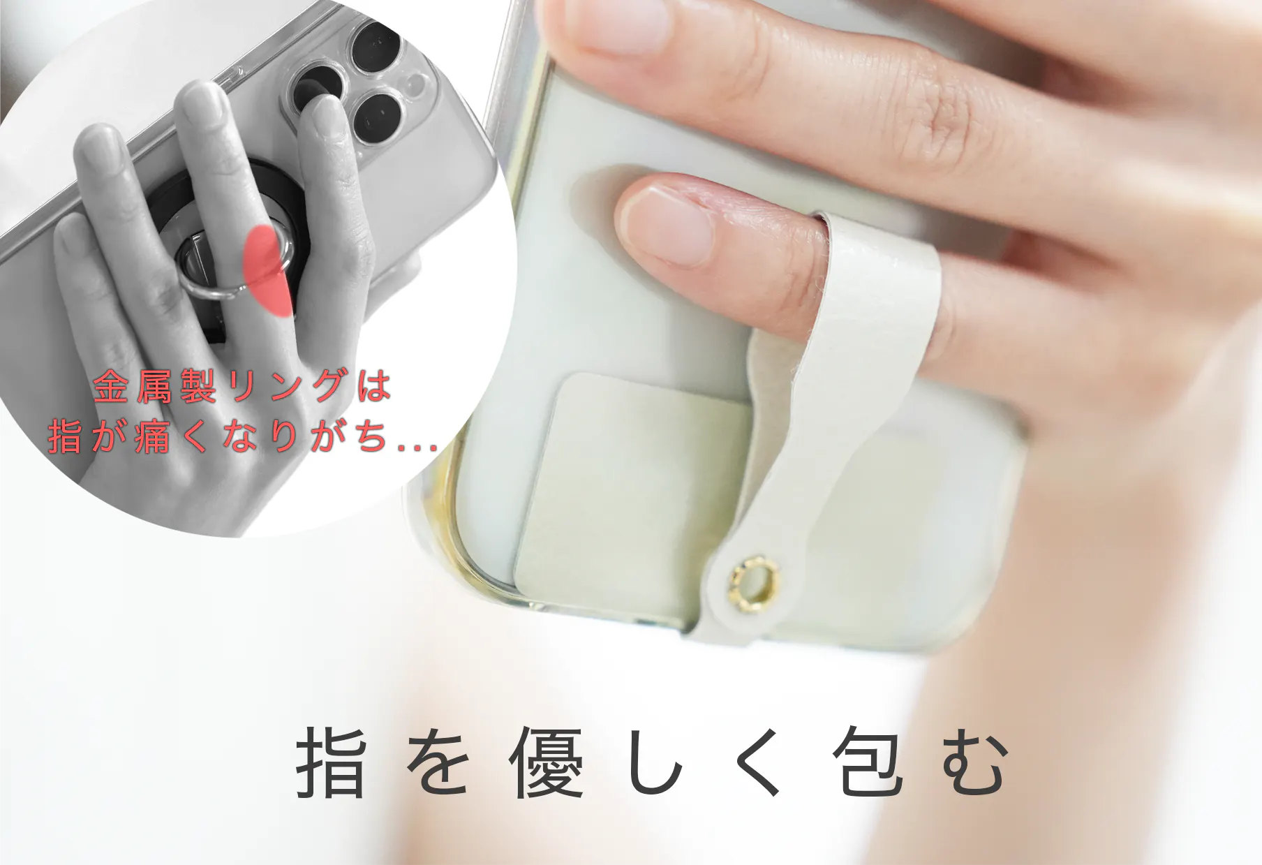 手指が拘束されずに自由になることで、片手で安心して操作できる範囲も広がります。