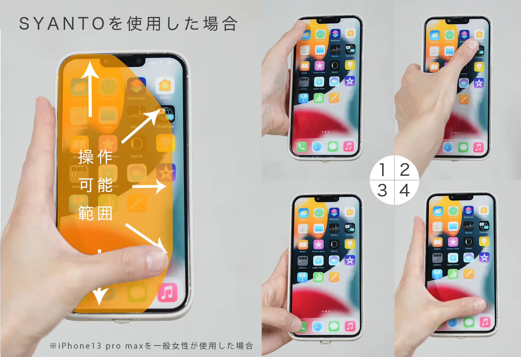 1日の中で、スマホを手で持っている時間は想像以上に長いものです。そんな生活の様々な利用シーンの中でも、SYANTOは活躍します。小さなことのようですが、日々の生活でより自由度が増すことに気づくはずです。