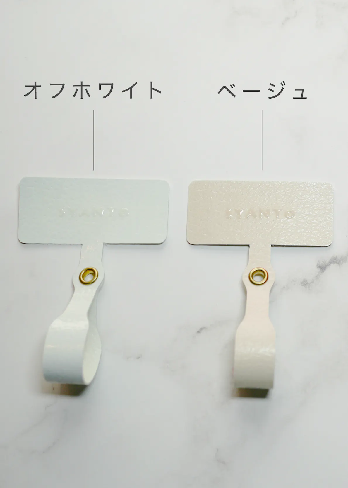 配色はスマホと調和するようミニマルデザインを採用しています。SYANTOのロゴをポスティング加工で印刷し、指が当たる部分にもSYANTOロゴをさりげなくアクセントにすることで、高級感を演出しました。