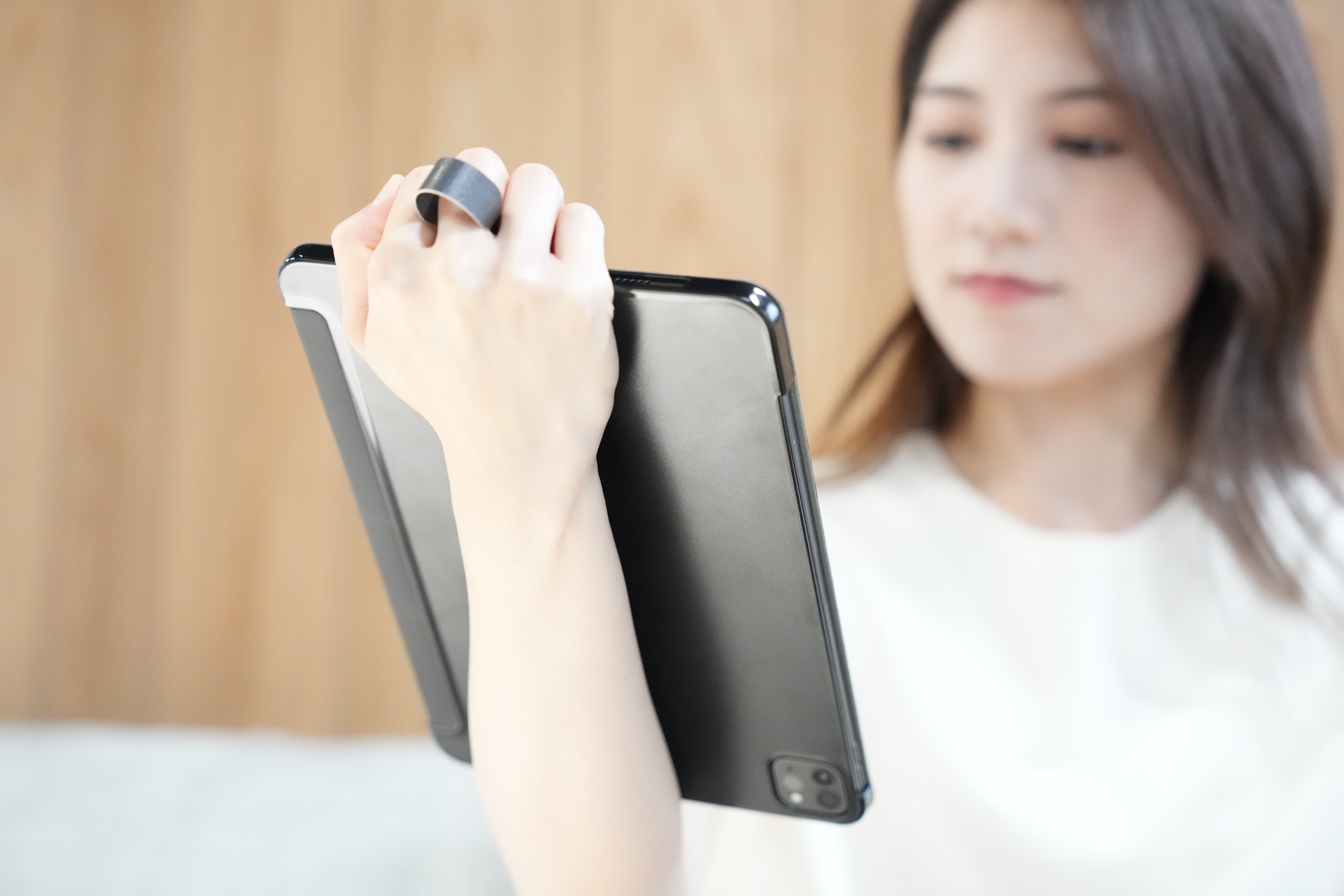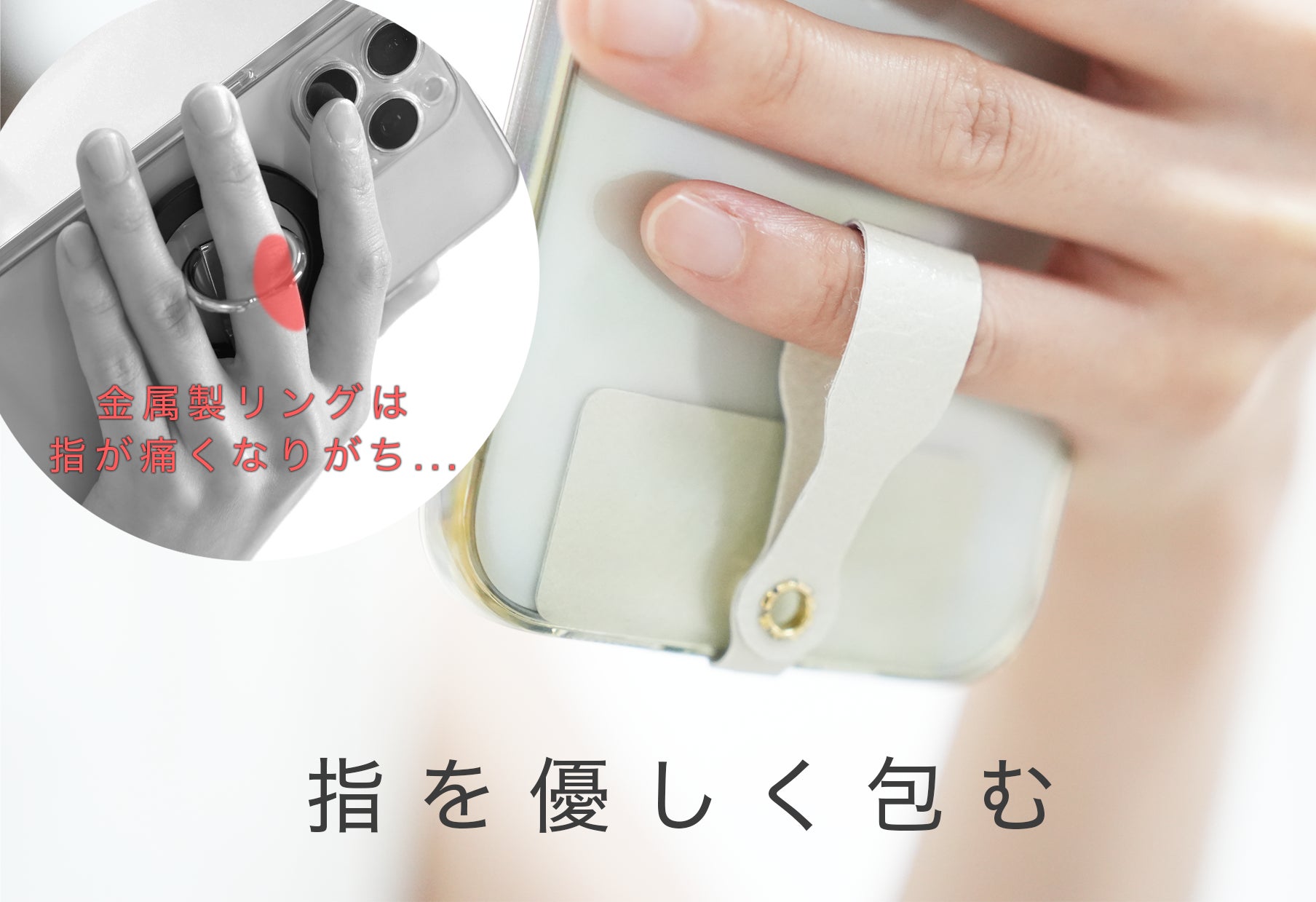 金属製のリングは指に食い込みやすく、長時間保持すると痛くなってしまいます。SYANTOは柔らかいシートで指を包み込むことで、小指への負担を軽減します。