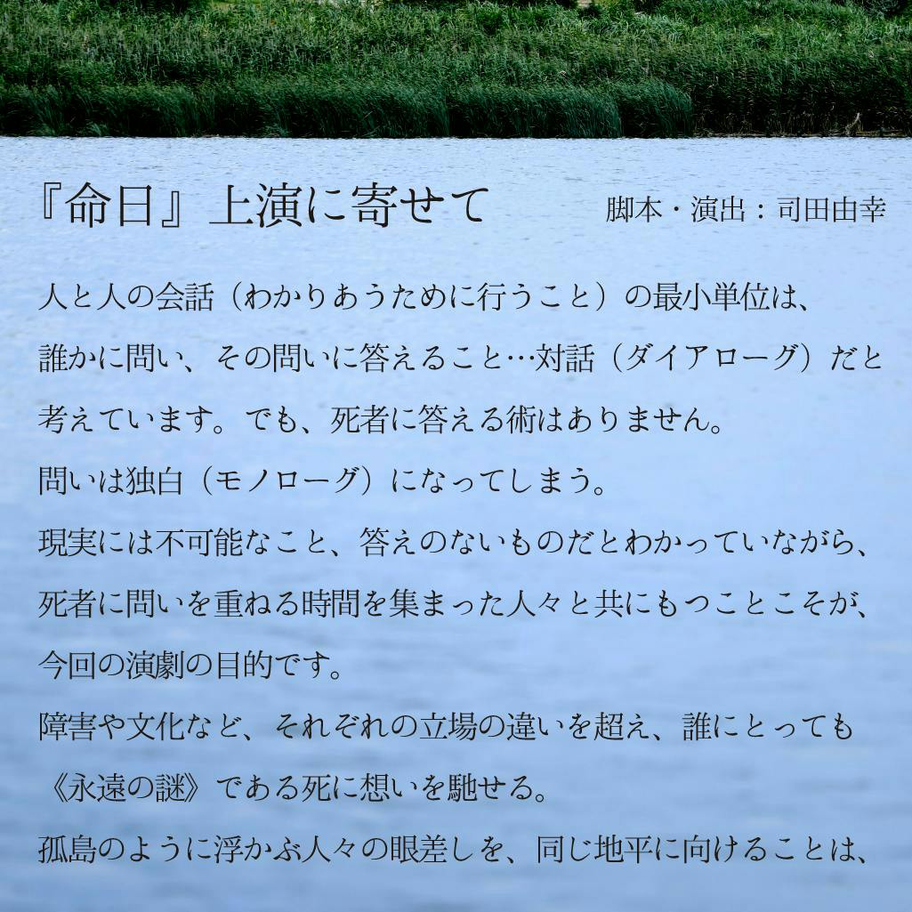 (公演やプロジェクトの詳細は『命日』特設サイト にて、ご覧いただけます)