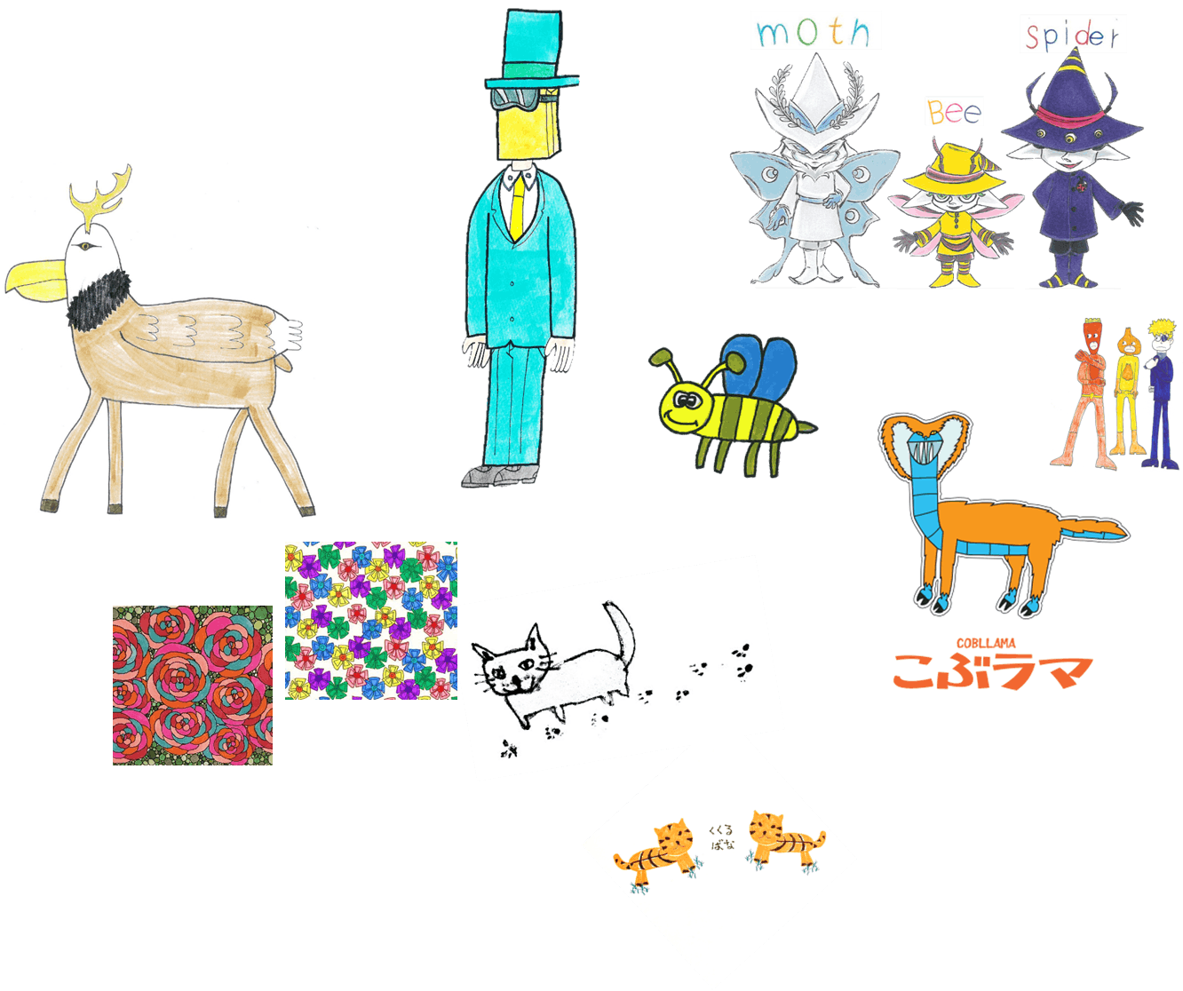 利用者のアート作品をデザインしたTシャツ・キャップ・ステッカー。世界に一つだけの表現をお届けします。