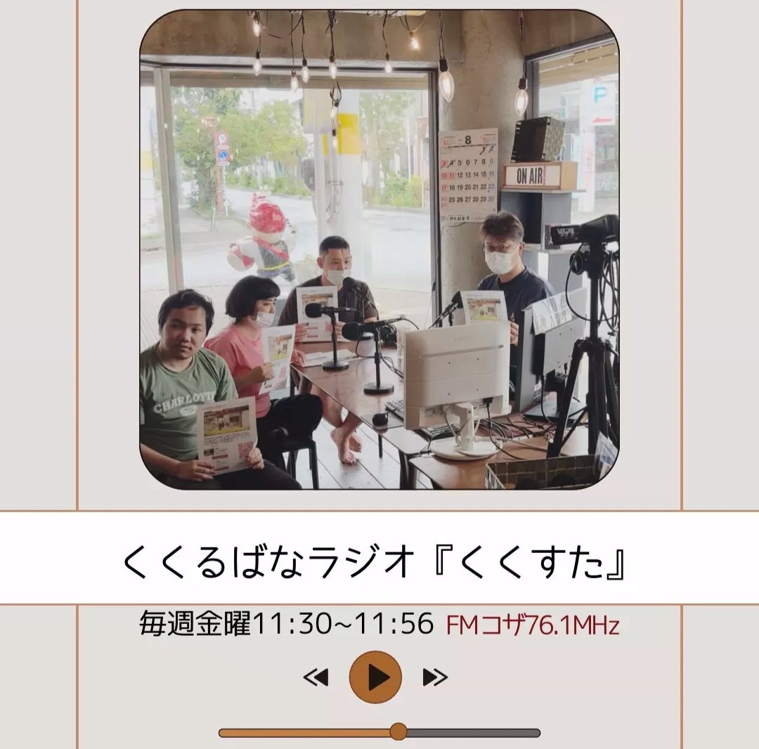 こんにちは。くくるばな国吉です。クラウドファンディングへのご支援、ご協力、応援本当にありがとうございます。クラウドファンディングの期間も残りわずかとなりました。引き続き、お知り合いの方にもシェアしていただけると嬉しいです。本日はくくるばなの活動のひとつ、「ラジオ放送」についてご紹介していきます。くくるばなでは毎週金曜11:30からFMコザ(76.1MHz)というコミュニティラジオ局で「くくすた」というラジオ番組を放送しています。開所当初から続けている活動で、スポンサー企業のご協力により10年以上番組を続けています。現在は「株式会社住太郎ホーム」さま、「株式会社オリジンlil」さま、「thinsui」さまのご協賛により番組を放送しています。番組は、当日の打ち合わせ後、本番の生放送を迎えます。職員が司会とミキサーを担当して、利用者の方を中心にその日のテーマに沿って会話を進めていきます。その日に流したい曲も利用者の方に決めてもらっています。ラジオ放送本番での、「人前で話す体験」や「テンポよく話す練習」を通して楽しみながらコミュニケーション力を高めることができるような活動です。youtubeにもFMコザさんからの動画が毎週投稿されますので、活動の内容が気になった方はぜひご覧ください。【くくるばなスタジオ-くくすた-】@2025/08/29