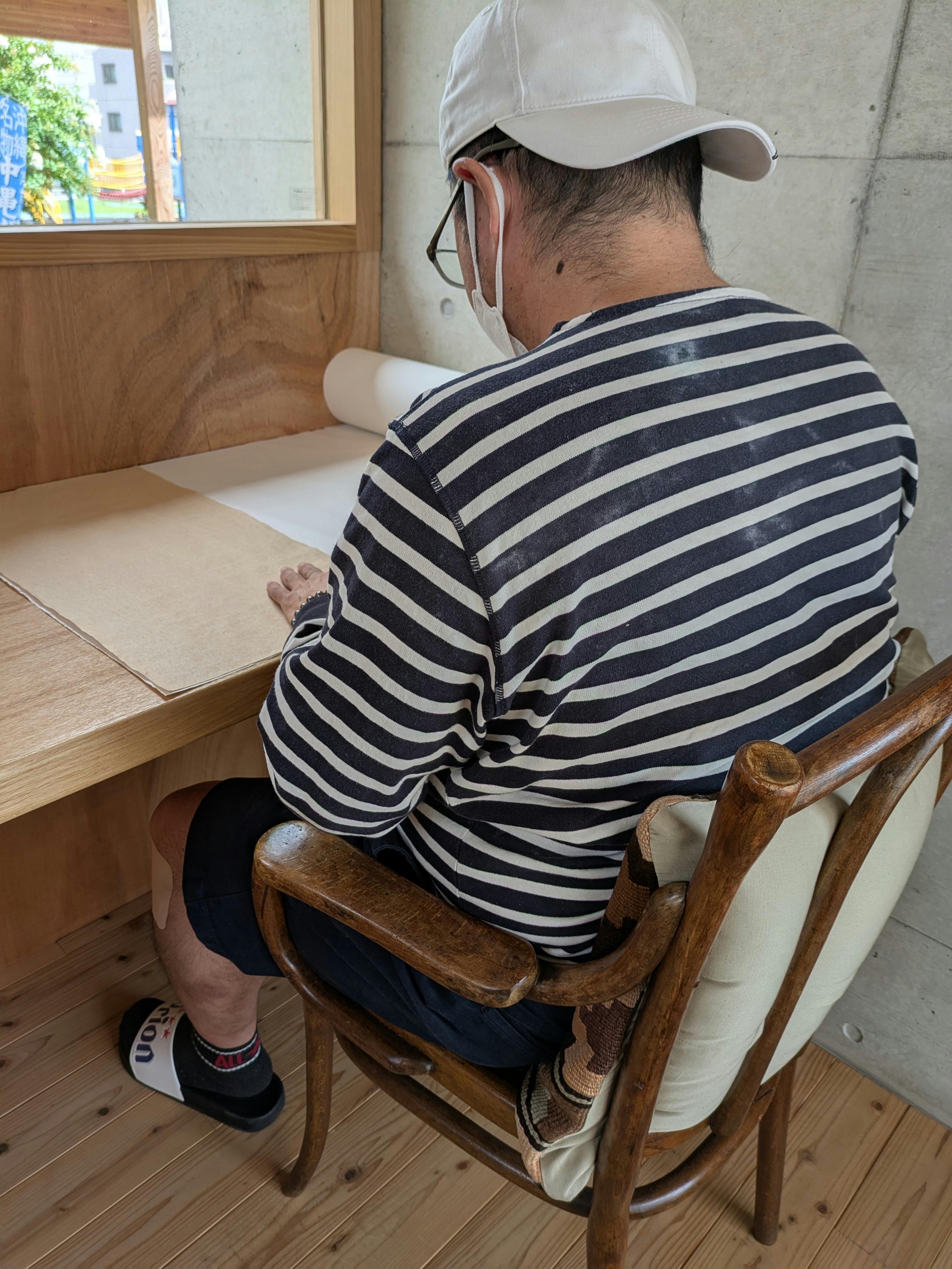 こんにちは。くくるばな国吉です。クラウドファンディングへのご支援、ご協力本当にありがとうございます。発注していた椅子が届きましたのでお知らせいたします。家具は、「安全で使いやすい家具であること」「心地よく過ごせる空間が作れること」を重視して選定しています。写真に写っている椅子は、Tさんが座って作業することをイメージして選定しました。Tさんには左半身が動かしづらい特性があります。強度があり、座位保持しやすい椅子が必要でした。数日使ってもらい感想を伺うと、「ひじ掛けが付いているし、しっかりしていて座りやすいよ」と教えてくれました。クッションの使い心地も良さそうです。