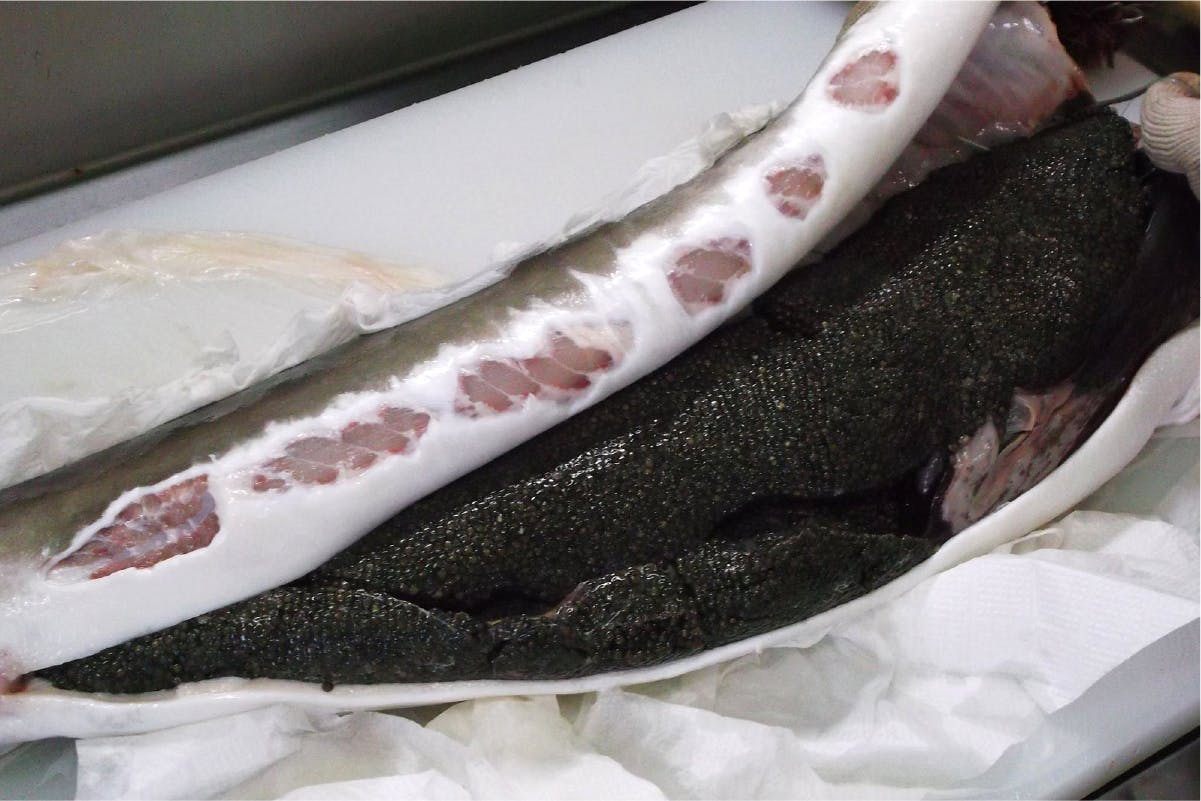チョウザメの身は海外では高級食材として珍重されているんです。