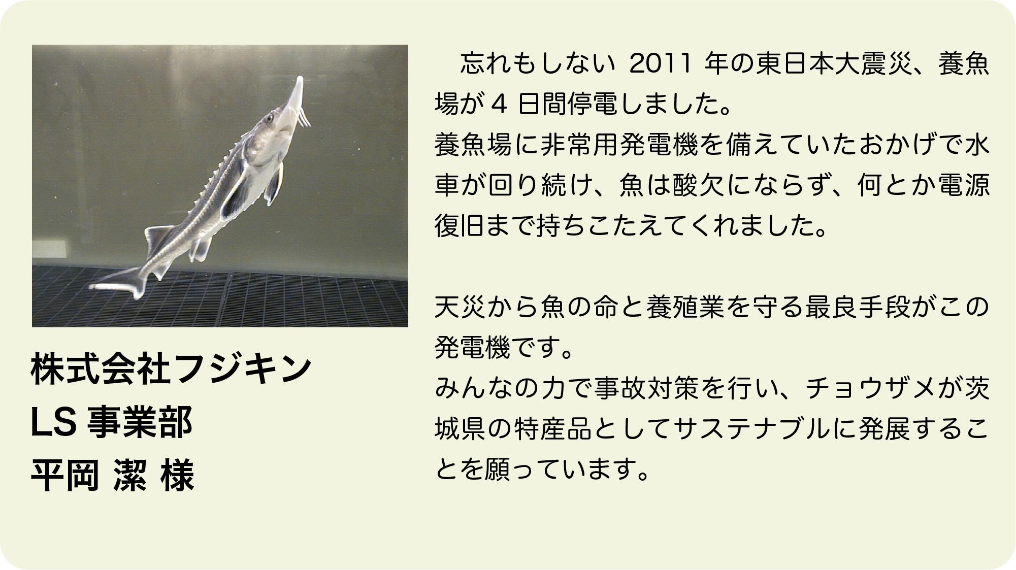 また、茨城県のキャビアがもっと世間に知れ渡るようPR活動にも使わせていただきたいです。