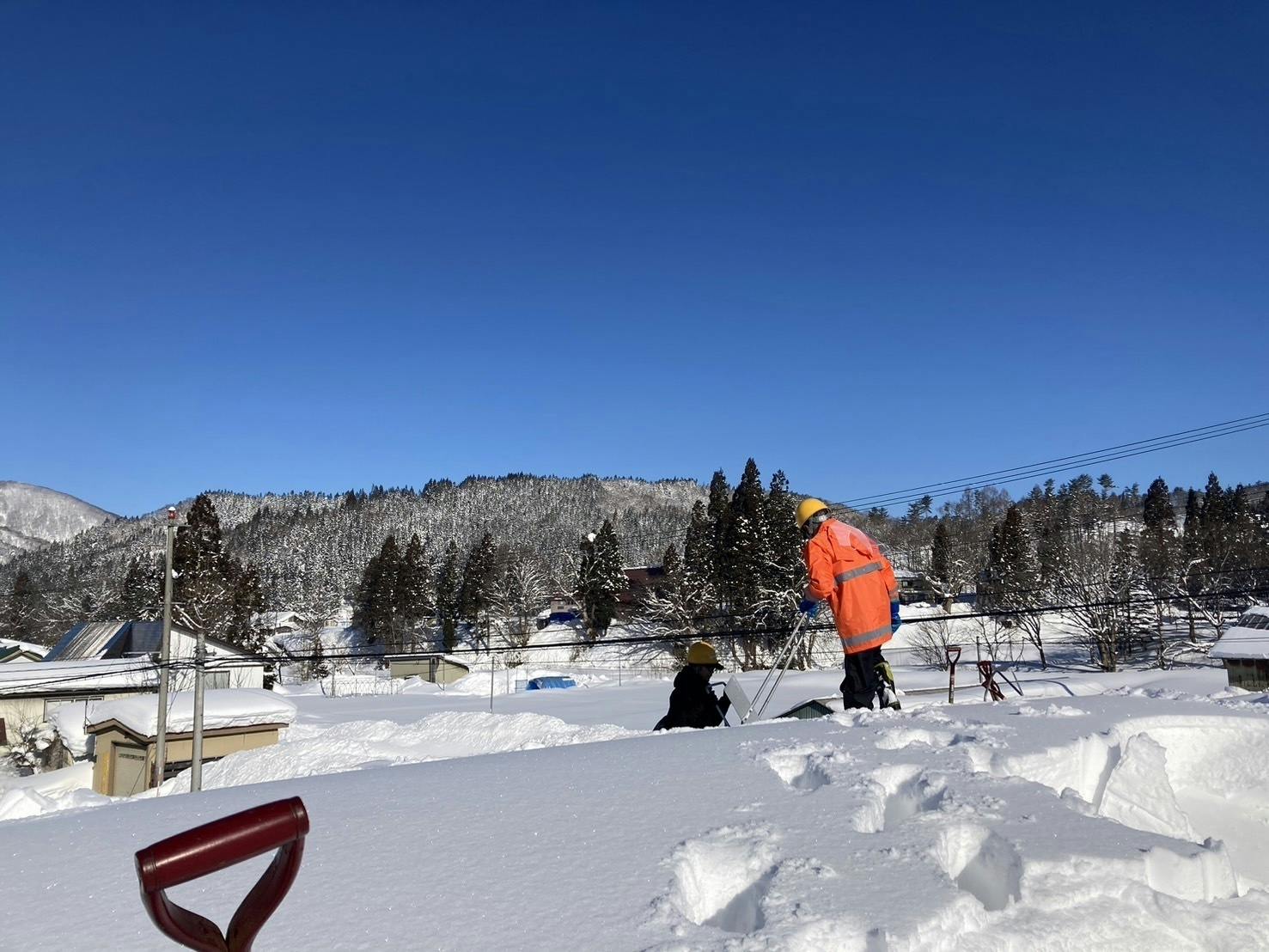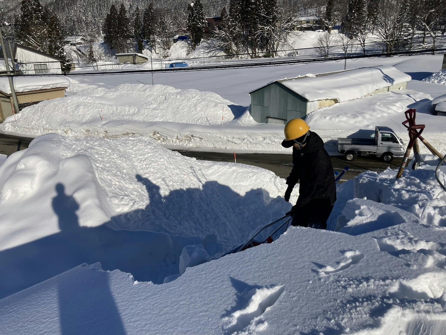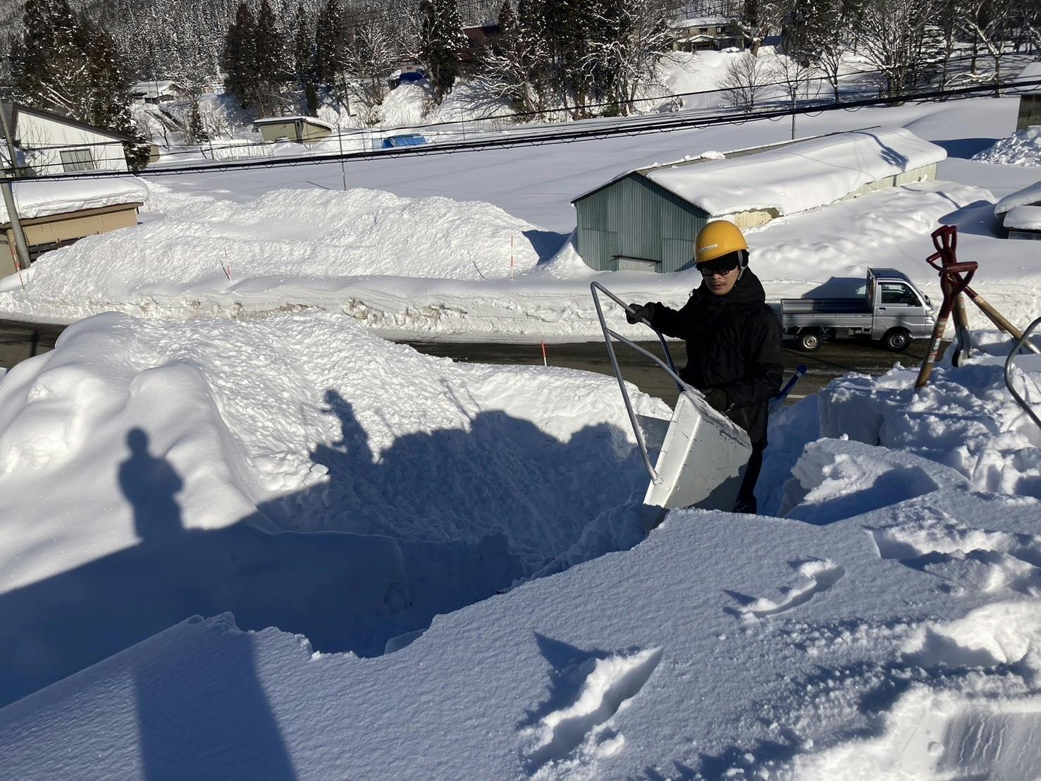 2月2日(日)、晴天の中、三又共助組合の活動(雪下ろし)に同行した山﨑樹一郎 監督。「同行」のつもりでしたが、高齢化の進む三又集落では否応なく組合員の高齢化及び人材不足が。当日急遽、即戦力として本プロジェクトスタッフとともに作業に参加。