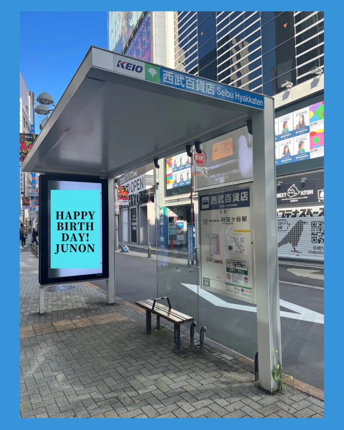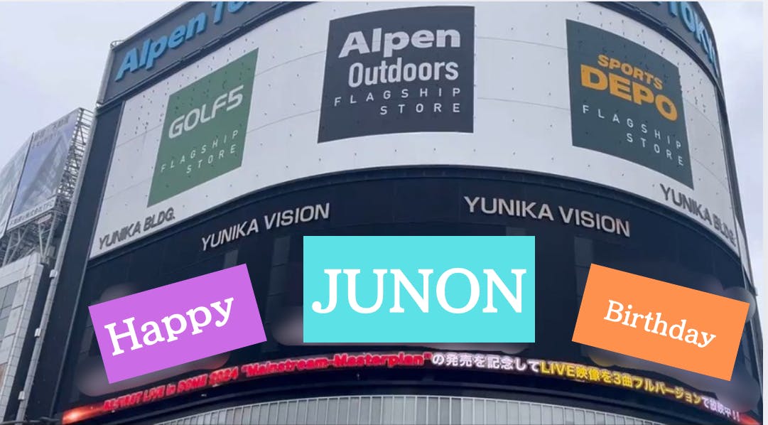 以前、韓国の大人気ボーイズバンドのメンバーのお誕生日広告が掲出されたのがとても素敵で、いつかJUNONくんのお誕生日にもこのようなお祝いがしたいとずっと考えていました。