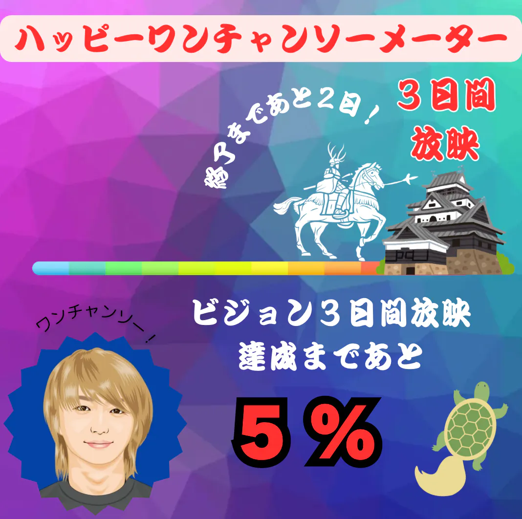 プロジェクト終了まであと【2日】皆様のおかげで、ビジョン放映3日間達成まであと【5%】となりました!