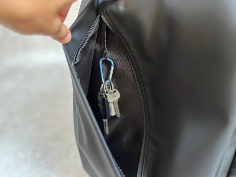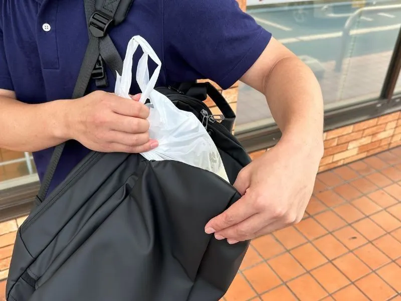 背負ったまま出し入れができるので、毎回バッグを下ろす必要はありません。