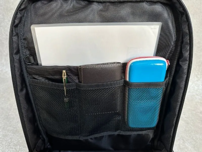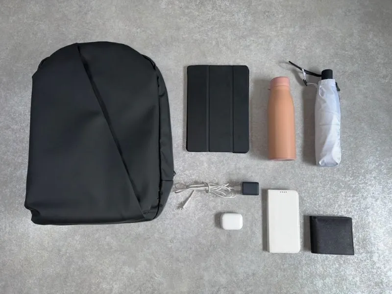 合計7つのポケットがあります。大容量のメインポケットに加えて、6つの機能的なポケットで、パソコン、ドリンク、スマホ、財布、上着、イヤホン、カメラ、もすっきり収納してサッと取り出せます。