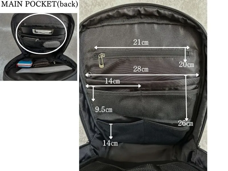 ポケットサイズは40×24センチ。15.6インチのパソコンまで収納が可能です。