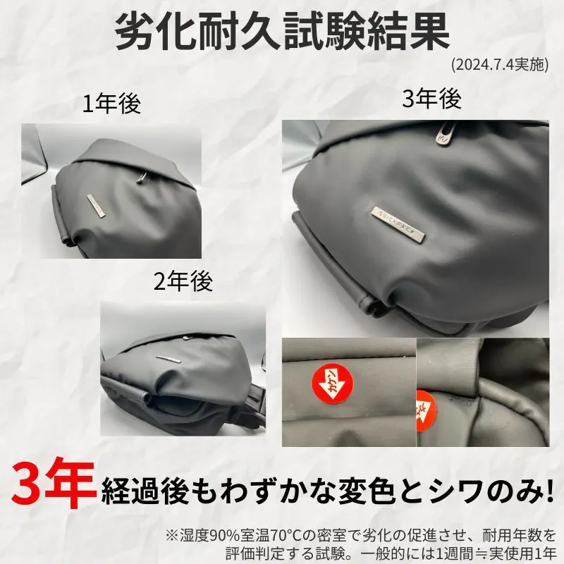 3年相当の劣化試験では軽微なシワや色の変化のみ。