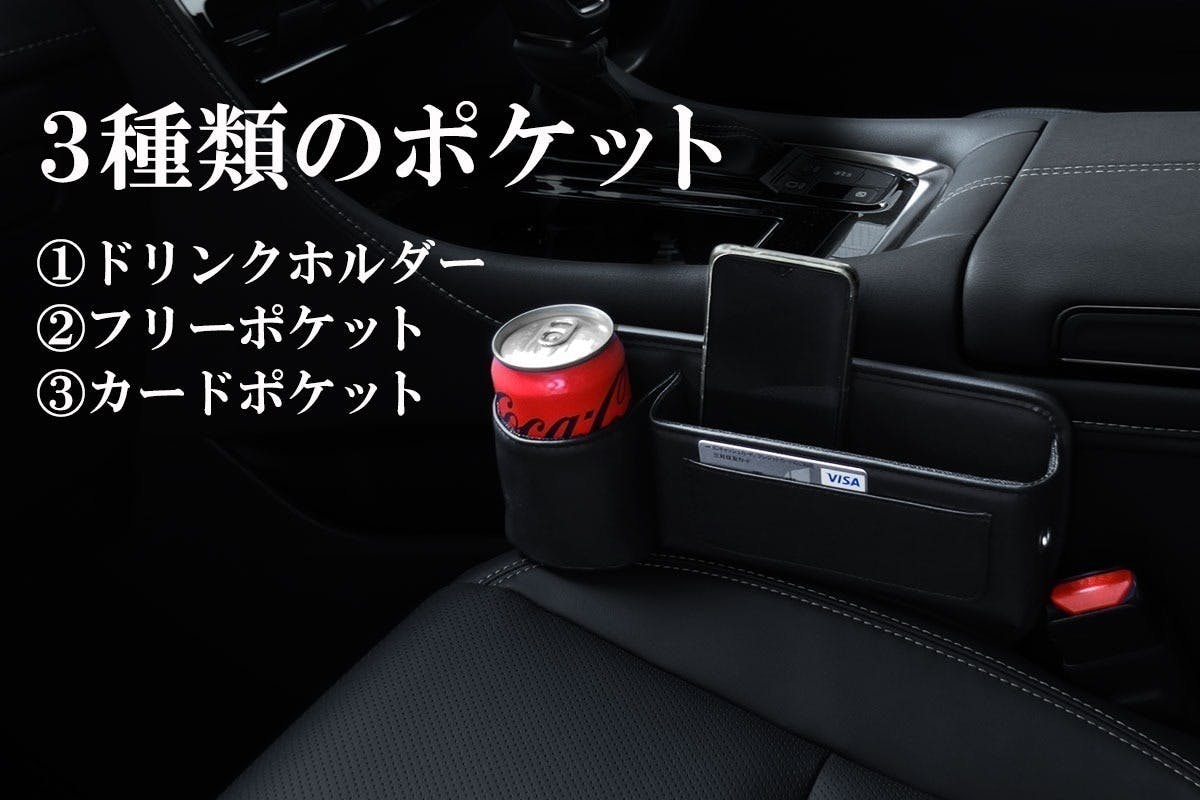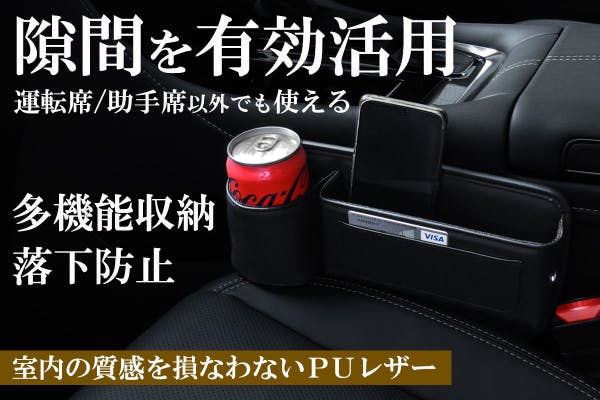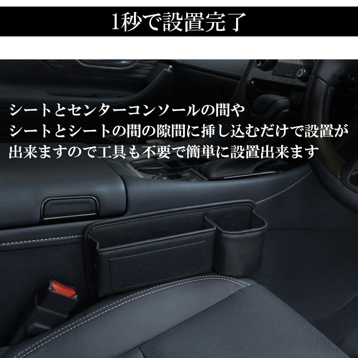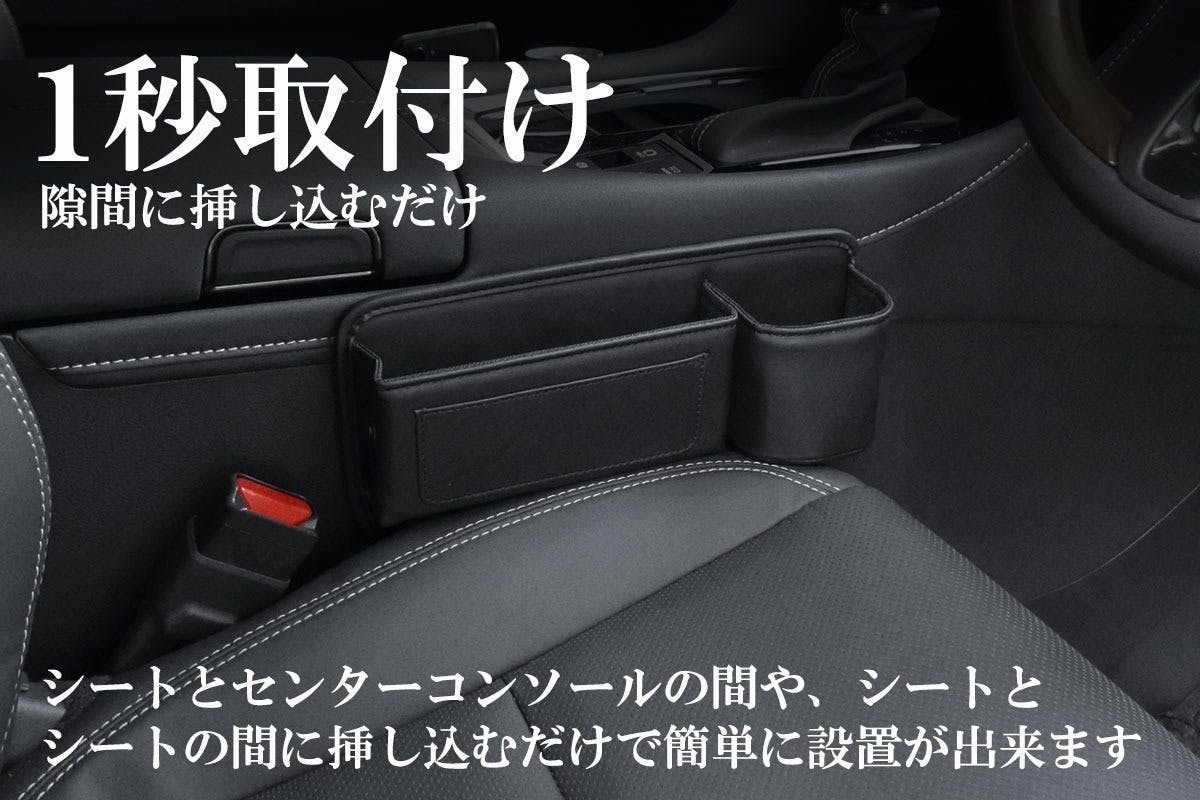 シートとセンターコンソールの間やシート間に挿し込むだけの簡単設置で便利な収納ボックス!