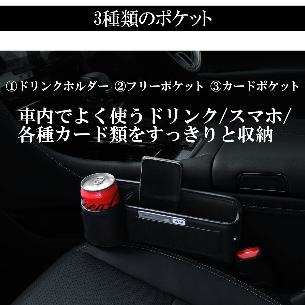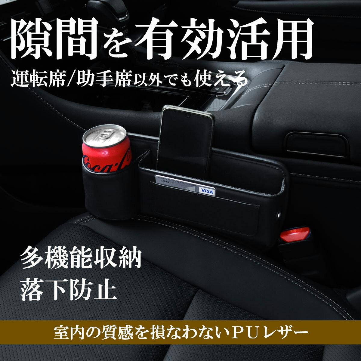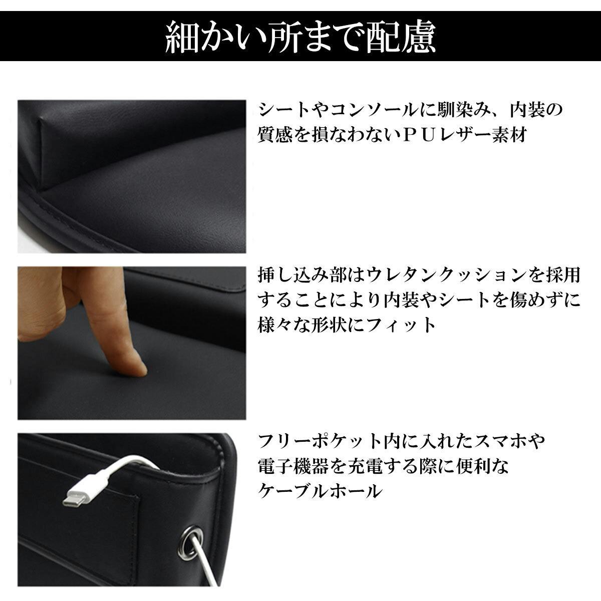 シートとセンターコンソールの間やシート間に挿し込むだけの簡単設置で便利な収納ボックス!