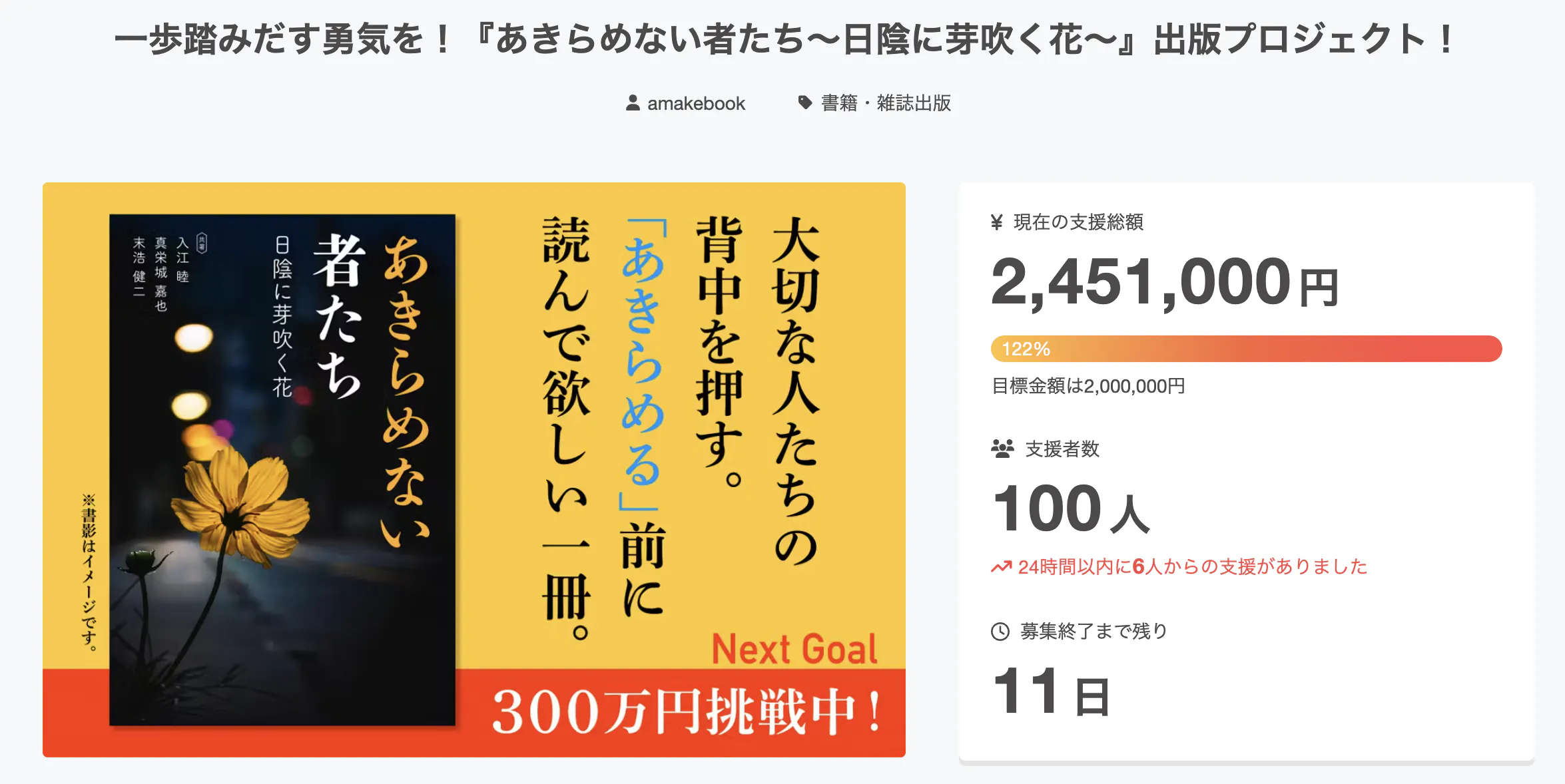 より多くの人の背中を押し、一歩踏みだす勇気を持ってもらうため、Next Goalである300万円の目標に向けて走り続けます。