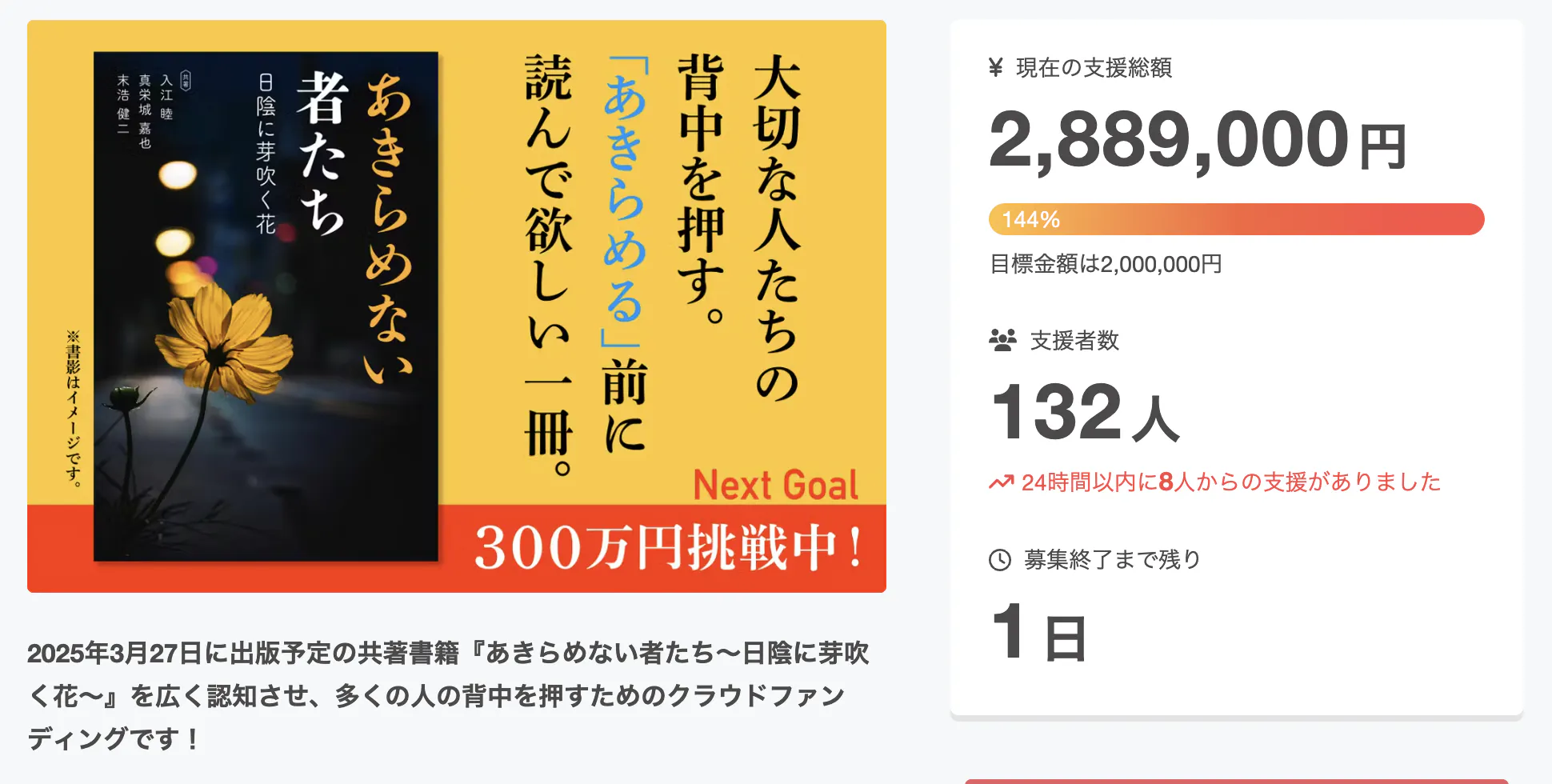必ず目標を達成し、より多くの方々のもとへこの本を届けます。