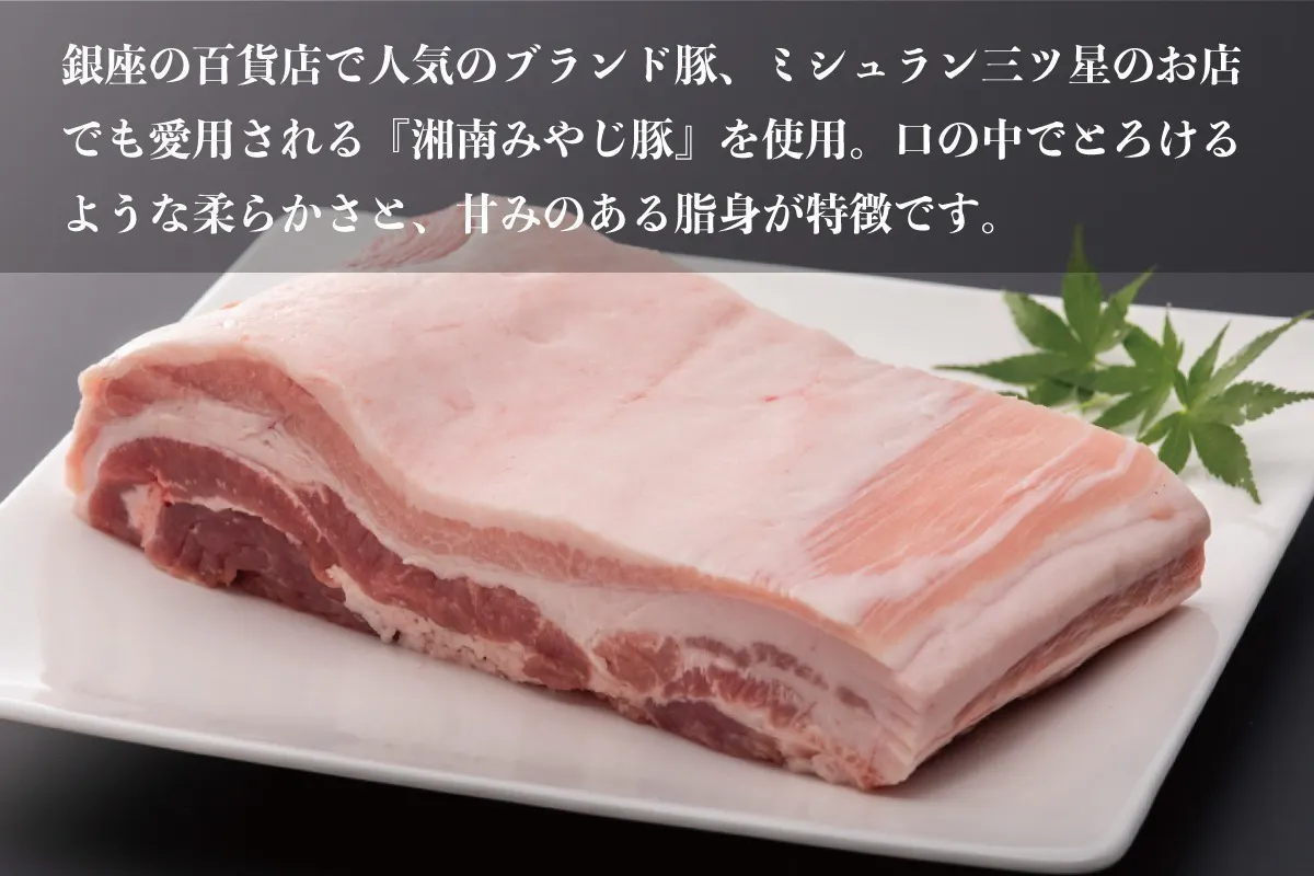 七志ラーメンの人気トッピングのひとつである「特製角煮」 を、銀座の百貨店で人気を誇り、ミシュラン三ツ星店でも愛用されている「湘南みやじ豚」 で贅沢に仕上げました。とろける食感、深い旨み、ここでしか味わえない至福の逸品をお届けします。