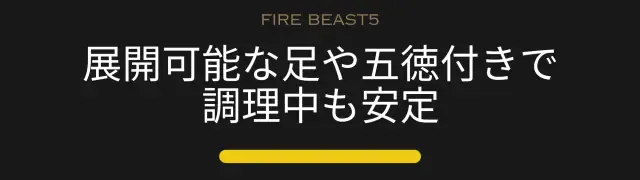 三本の足と五徳により安定性が強く、調理中もフライパンがガタつきません。