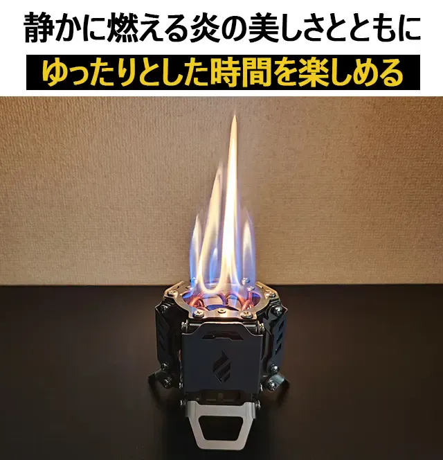静かに燃える炎の美しさと共に、上質な自分時間を堪能できる、スローキャンパー必携のアルコールストーブです。