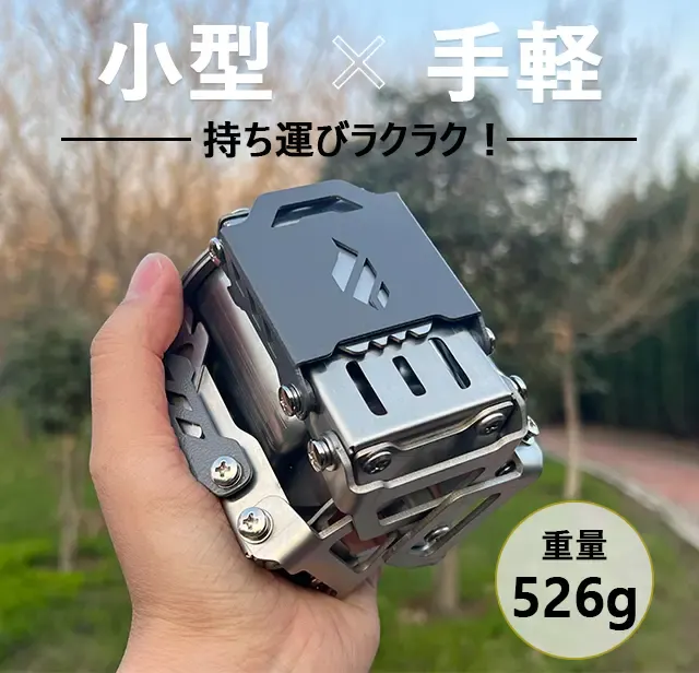 「Fire Beast5」は手のひらサイズなので、持ち運びもかさばらず、使用後は五徳や脚を折りたたむことで収納場所も取りません。