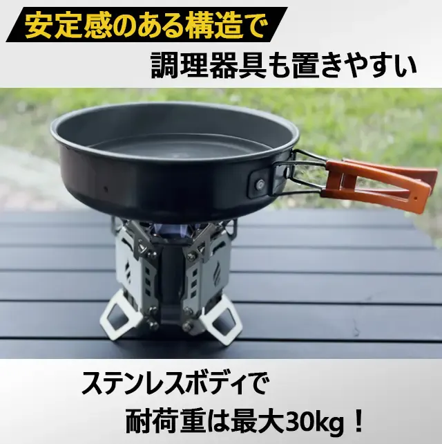 頑丈な作りで耐荷重が最大30kgあるので、重めのクッカーにもご使用いただけます。