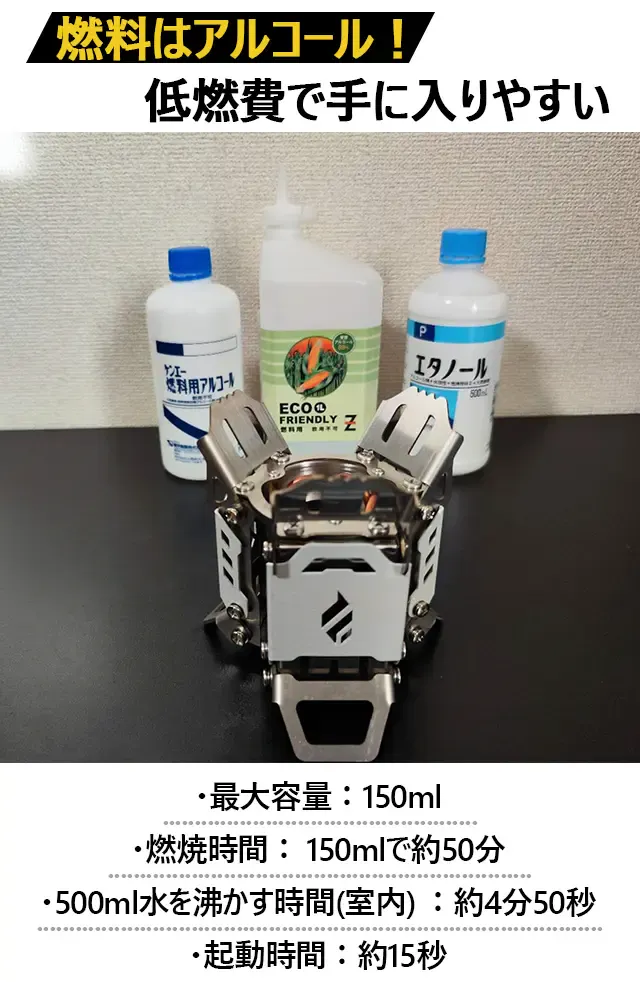 低燃費で操作が簡単なこのアルコールストーブを、ぜひお試しください。