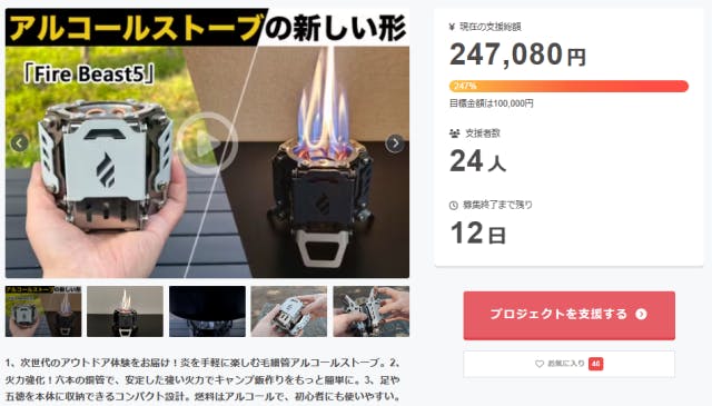 アルコールストーブ「Fire Beas5」をご支援いただいた皆様に心よりお礼申し上げます。
