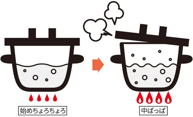しかし、お米の炊飯では一気に加熱させるのはNG。古くから土鍋炊飯では【始めちょろちょろ中ぱっぱ】という言葉があります。
