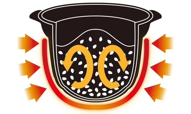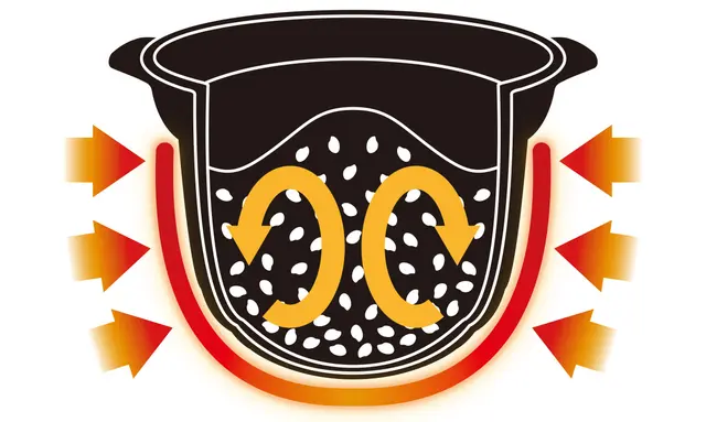 炊き始めは低温で加熱を行いその後一気に強火で炊き上げるのが、美味しいご飯を炊く秘訣です。