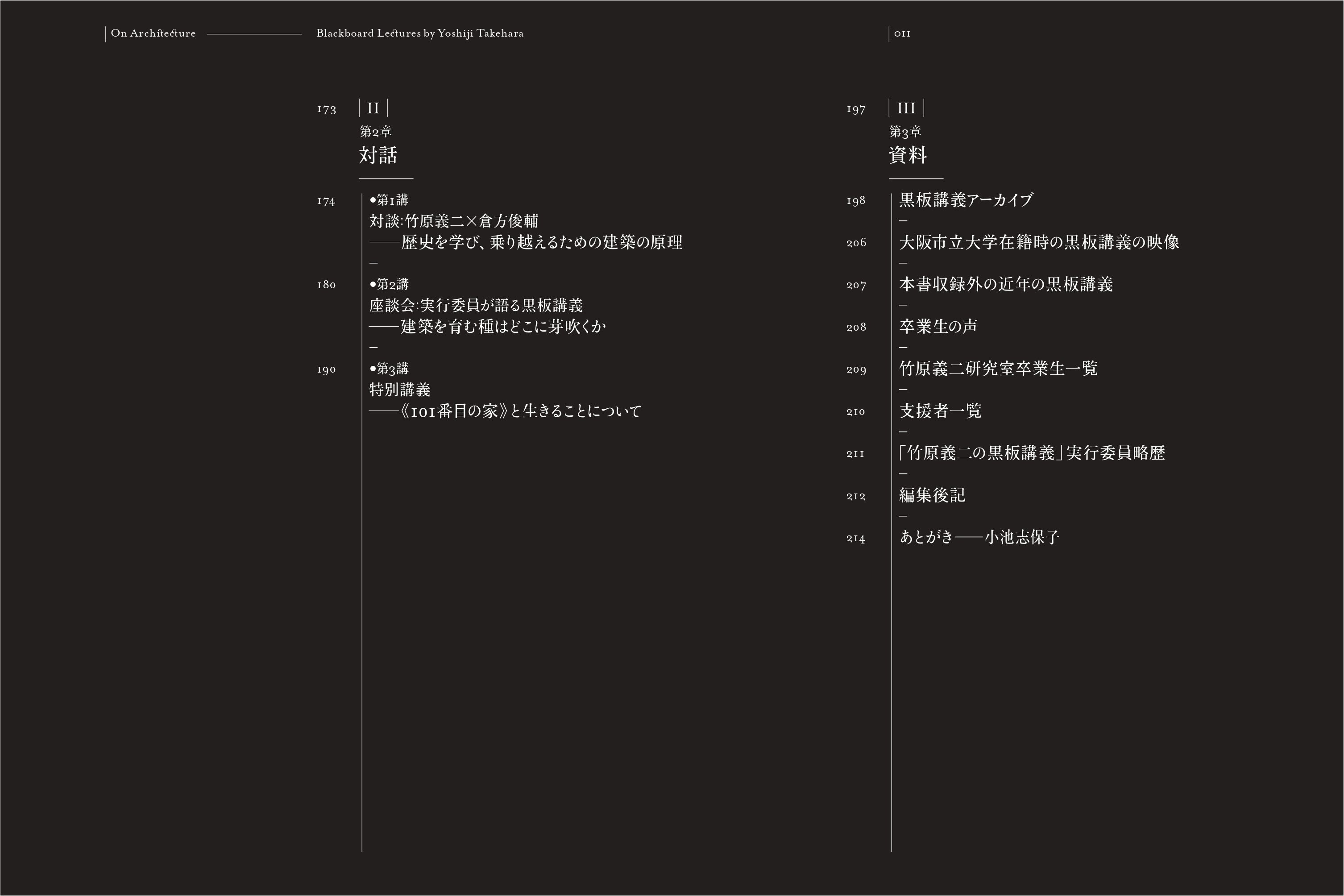 第3章は資料となっていますが、これもなかなか充実した内容です。アーカイブは近年実施した黒板講義(黒板講義はこの本に収録されているもの以外にも多く実施しております)や、卒業生、また特別支援をしていただいた方のお名前を掲載しております。