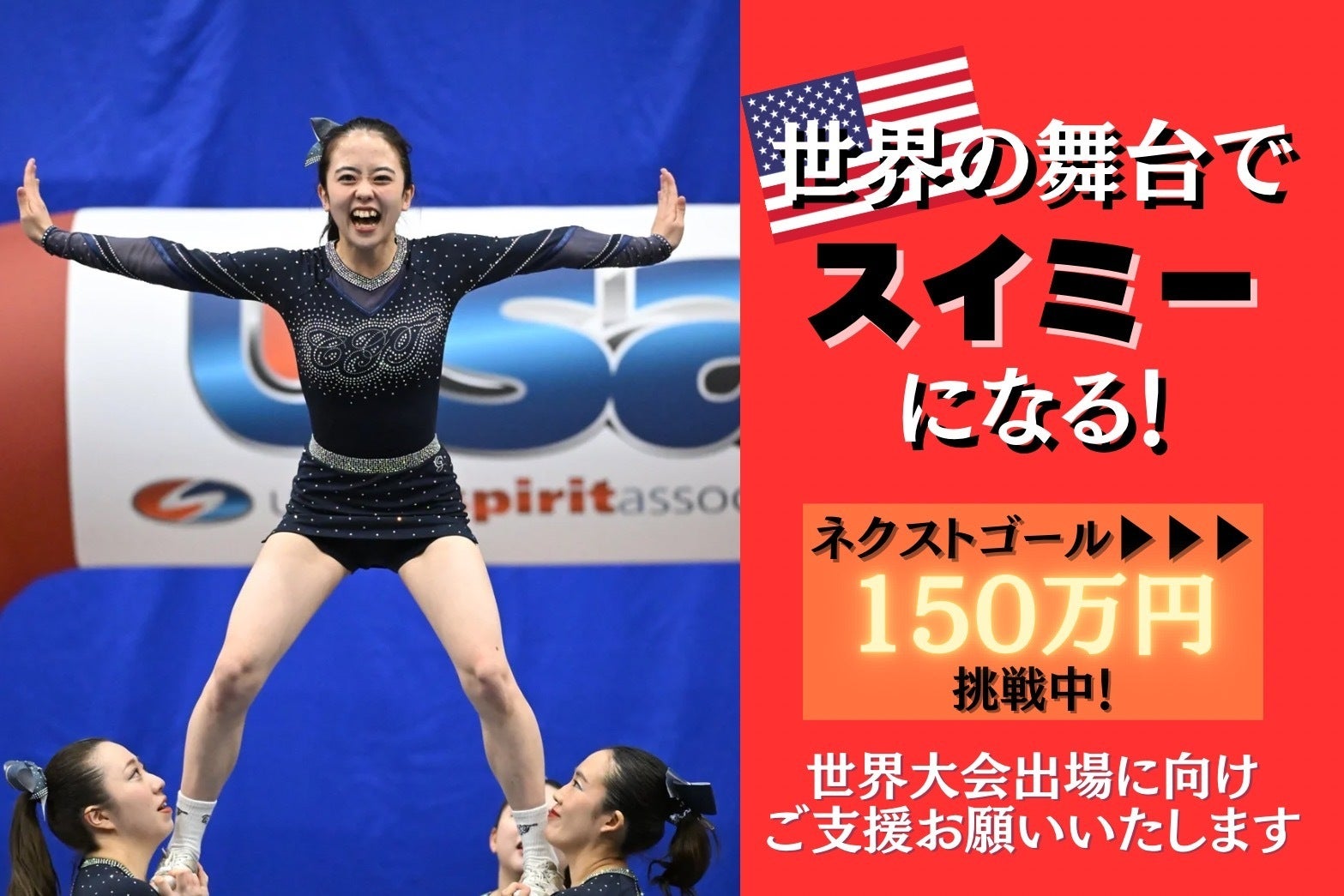 2025/04/25 22:01こんにちは!Cheer Galaxy Tokyoです!いつも温かい応援、本当にありがとうございます!【クラウドファンディング ネクストゴール達成!】3月末に目標額の100万円を達成することができ、更なる目標として150万円をネクストゴールに設定しておりましたが…遂に先日、ネクストゴールの150万円を達成することができました!!ご協力いただきました全ての皆様に、心から感謝申し上げます。本当にありがとうございます!皆様に応援してよかったと思っていただけるような演技で必ずお返しするぞと、更に士気が高まっています!国内における練習はあと2回となりました…!まずは無事に現地に辿り着くために、最後の国内練習を怪我なく&有意義な練習で締めくくれるよう、週末頑張ります!!そしてこのプロジェクトも、引き続きご支援お待ちしております!お気に入り登録・拡散の程、よろしくお願いいたします。【いよいよ出発!】ついに!4/28、出国の日が近づいてきました。今シーズン、サミット出場を目指すと決めた日から約11ヶ月、長いようで今思えばあっという間すぎる11ヶ月間でした。少しお恥ずかしい話ですが、サミット出場権を獲得する前の10月頃、サミットが開催されるチアリーダー達の聖地”ESPN”の画像に、自分たちの集合写真を合成してそれぞれお守りにしていました笑「絶対に現地で写真を撮るんだ!」と気持ちを奮い立たせて挑んだジャムフェス。無事にBID(出場権)を獲得できたあの瞬間は、一生忘れることができません。それからの5ヶ月間、憧れのアメリカの舞台で最後までGalaxyらしく戦い抜くために、沢山の協力を得て、ベイビーステップながらも、演技をレベルアップさせることに注力してきました。全員での練習時間は限られているため、平日に自主練をしたり、メモメモ(詳しくは過去の活動報告をご覧ください★)で想いを共有するなど、練習以外の時間もできるだけ有効に活用しようと試行錯誤してきました。また渡米が近づくにつれ、コーチやOGの方々からチーム全員でのお揃いグッズを沢山頂きました!お揃いのグッズが増えていくたび、アメリカの舞台が近づいているんだなと、ワクワク・ドキドキの気持ちも募ってきました。チームの中には今回初めてパスポートを取得して、人生で初めて海外に行くメンバーもいます。楽しみ、不安、期待、緊張——それぞれがさまざまな気持ちを抱えていますが、あの舞台でやりたいことはただ一つ。「ギュッとなって最高の演技をする」ということ!ご支援いただいた方々、コーチやOGの方々、家族や友人、Galaxyに関わってくださった全ての方々へ、感謝の気持ちを演技でお返しできるよう、最後の最後までチームとして成長していきます!最後まで見届けていただけると嬉しいです!引き続き応援よろしくお願いいたします!! もっと見る