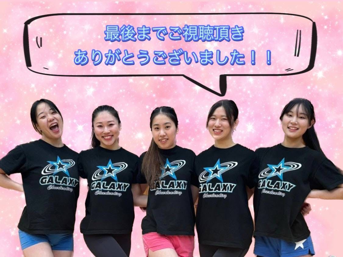 私は昨年度でGalaxyを卒業しました。何度アメリカを目指しても叶わず、悔いを残してチアリーディングを引退しました。が、今年度のメンバーがこれまでの想いを繋ぎsummitに通過してくれました!そして最高のチームに復帰させていただいております。恩返しとして、Summitで最高の演技をしてきます!