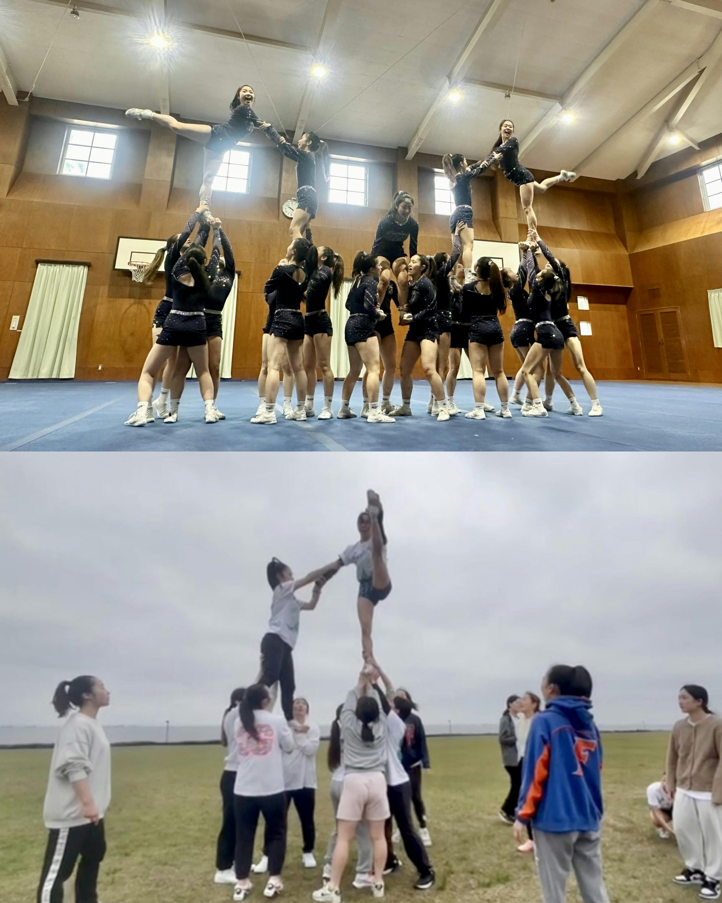 「魅せる演技」をするために、新たにモーション(腕などの振り付け)を追加し、時間を取って全員で魅せ方を研究したり、華やかかつクリーンな演技を作るために、細かい所までピタッと合わせる練習を何度も行ったりと、徹底的に細部にこだわった1日目でした!