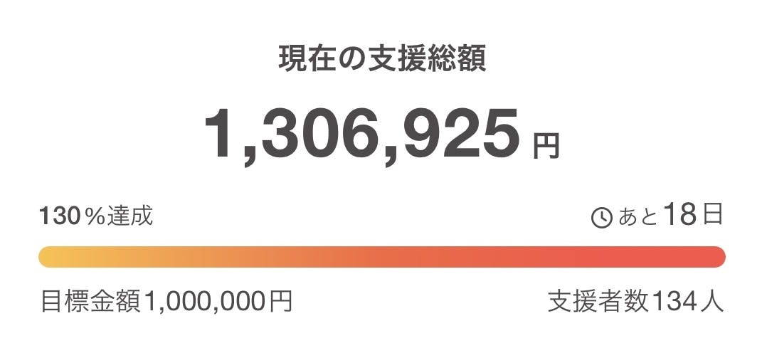 先日、目標額が遂に130%を達成いたしました!