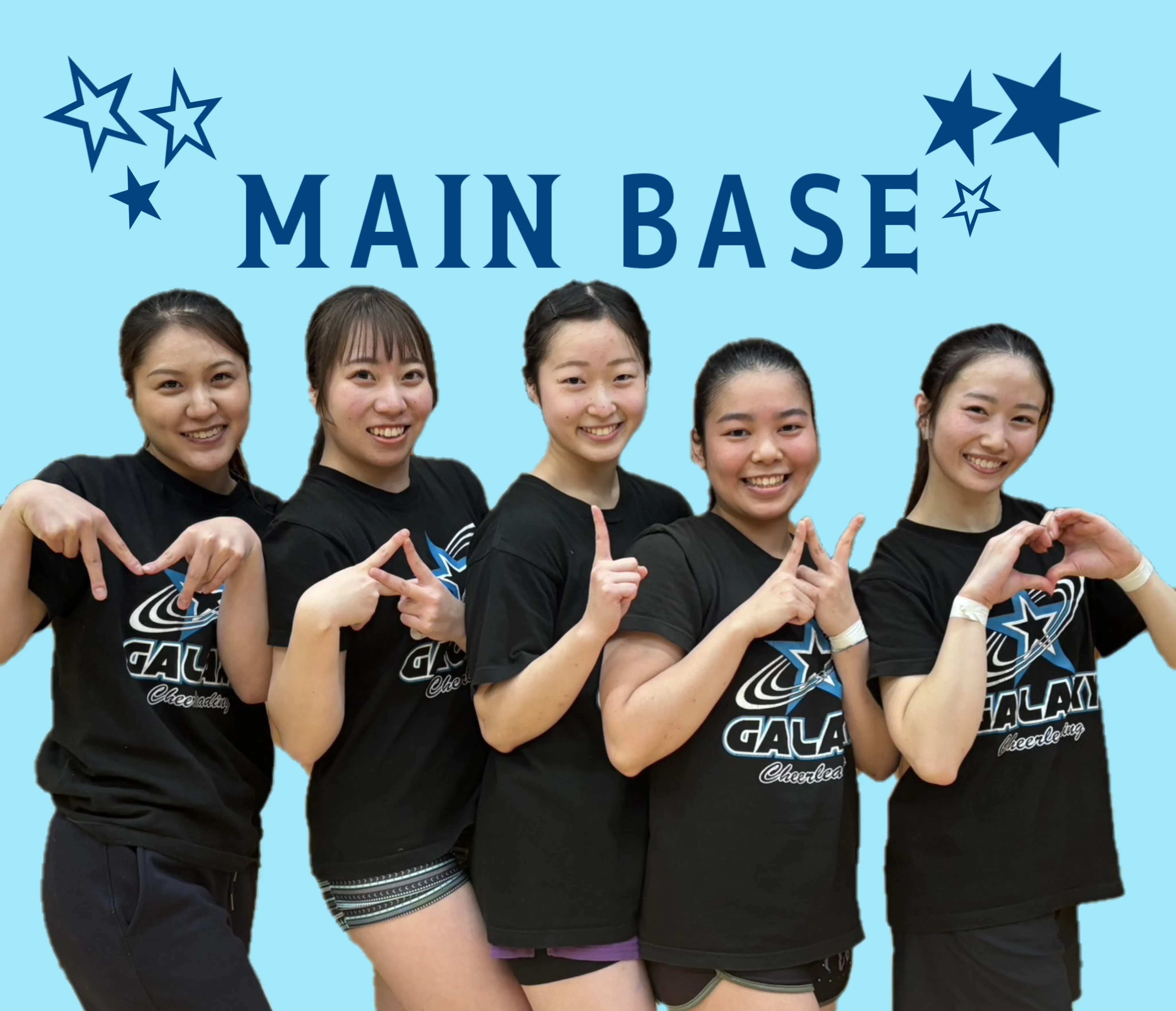 こんにちは!活動報告をご覧いただきありがとうございます!日々たくさんの暖かいお心遣いを賜り、今週はなんと目標の60%を超えることができました!応援メッセージもメンバー全員で読ませていただいています!本当にありがとうございます!またGalaxy公式インスタグラムのフォロワーも、なんと1,600人を超えました!Galaxyを身近に感じていただけるようなストーリーを毎日更新していますので、こちらも併せてフォローよろしくお願いいたします✳︎================================本日はメンバー紹介第三弾!Base(ベース)の中でも、今回はメインベースのメンバーを紹介させていただきます!(トップ画像に隠された”MAIN♡”の文字も是非見つけてみて下さい♪)★ ベースとは・・・スタンツを土台から支える重要なポジションです!フライヤーを持ち上げるだけでなく、しっかりと安定させ、技が成功するように調整する役割もある為、パワーと安定感が特に必要とされます!ベースが下からしっかり支えることで、フライヤーは自信を持って技を決めることができ、技全体の動きもスムーズになります!メインベースの役割を実際の動きと共に解説してみました!↓ぜひご覧下さい!↓ それでは早速メンバーを紹介していきます☆1人目はAkariです!優しさオーラ全開!!温かな笑顔で誰とでもすぐ仲良くなる、年上から年下まで分け隔てなく接する「親しみやすさ」なら誰にも負けません!日々の練習を真面目に取り組み、チームに揺るぎない安定感と抜群の安心感をもたらし、Lv.4・Lv.6ともに大活躍☆*今シーズン、スキルをぐんぐん伸ばしている、とても頼りになる存在です!!【名前】植田あかり(うえだあかり)【チア歴】18年目【Summitへの意気込み】ずっと夢だった舞台で演技できることが本当に嬉しいです!!大好きなGalaxyのみんな、いつも応援して下さっている方々へ感謝の気持ちを忘れずに、演技で恩返しができるよう精一杯頑張ります!応援よろしくお願い致します!2人目はReonaです!Galaxy1かわいい!!アイドル的存在で、いるだけでみんなを笑顔にしてくれる癒し系メンバー!今シーズン、トップ→ベースへ転向し、スキルを更にぐんぐん伸ばしている努力家!どんなに成長しても謙虚さを忘れず常にチームの為に尽くしてくれる、どんなポジションでも輝く、Galaxyに欠かせない存在です!【名前】武内玲於奈(たけうちれおな)【チア歴】7年【Summitへの意気込み】大好きなGalaxyのみんなと夢の舞台で演技ができる事、本当に嬉しいです!日頃から支えて下さる皆様への感謝を忘れず、魅せ切る演技をします!精一杯頑張りますので、応援宜しくお願いします!3人目はYukaです!普段は看護学生とチアを両立する大学生!明るくほのぼのしているゆかの周りはいつも笑顔で溢れています!一方で、チアのこととなれば誰よりも直向きに取り組む、とっても真面目な努力家!アドバイスの吸収が早く、的確に事をこなしてくれる、本当に頼れるメインベースです!【名前】青木優花 (あおきゆか)【チア歴】8年目【Summitへの意気込み】チアを始めた時はアメリカで演技することになるとは思ってもいませんでした。、、、ですが!行くからにはお世話になっている方々に演技で感謝の気持ちを届けられるように一生懸命頑張ります!!応援宜しくお願い致します!4人目はYurinoです!Galaxy1の脚長ベース!本番前の円陣では大きな声でチーム全員の気持ちを引き締めてくれます!今年から本格的にベースとして活躍中!誰よりもやる気のある姿勢と、真面目で優しい性格で、Galaxyに欠かせない存在です!【名前】山川由梨乃(やまかわゆりの)【チア歴】8年目【Summitへの意気込み】初めてのアメリカの舞台にGalaxy全員で立つ事、挑戦する事今からドキドキです!!沢山の方々に支えて頂いている事への感謝の気持ちを込め、チームでギュッとなった演技をします!応援よろしくお願いいたします!5人目はKyokaです!オーストラリアでの2年間のチア留学を経て、更にパワーアップしてGalaxyに帰ってきてくれました!ベース、スポット、タンブリングまでこなし、どれをとってもハイレベルな実力派!海外での経験を活かして、いつも優しく的確なアドバイスをくれる、チームの成長に欠かせないとっても頼れる存在です!【名前】清水杏夏 (しみずきょうか)【チア歴】18年【Summitへの意気込み】今回みんなと一緒にサミットには行きませんが、それまでの過程で自分がチームの一員として貢献できることを精一杯頑張ります! 以上、Galaxy最強メインベース5名の紹介でした!☆