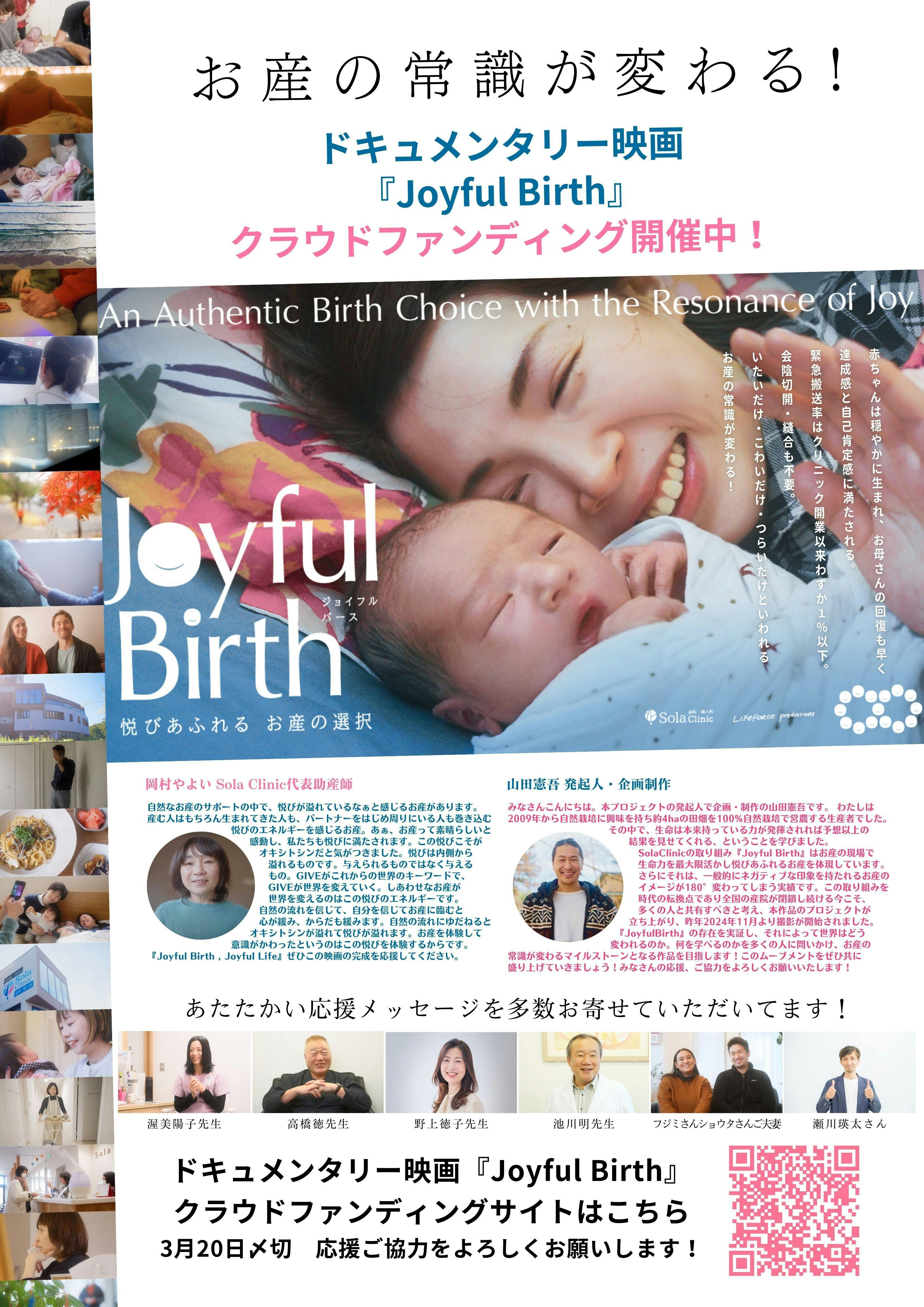 みなさまこんにちは!いつもドキュメンタリー映画『JoyfulBirth』制作応援クラウドファンディングをご支援・ご協力いただき誠にありがとうございます!先日告知させていただきましたクラウドファンディング告知用フライヤーが完成しました!本日、約1,200部ほどを発送していますが、まだまだ余裕があります。こちらのフライヤーを設置、または配布していただける方がいらっしゃいましたら、ぜひお声がけくださいませ!サイズはA4になります。Instagramの公式アカウントJoyfulBirthMovieもしくはCAMPFIRE内メッセージメール joyfulbirthmovie@gmail.comにてお待ちしています。現在、寒波により全国的に大雪となっています。みなさま外出の際はくれぐれもお気をつけてお過ごしくださいませ。発送物の運送も遅延が出ていますことをご了承ください。今後とも作品の完成に向けて取り組んで参ります。引き続き本プロジェクトを応援いただきますようよろしくお願いいたします!ご覧いただきありがとうございます!