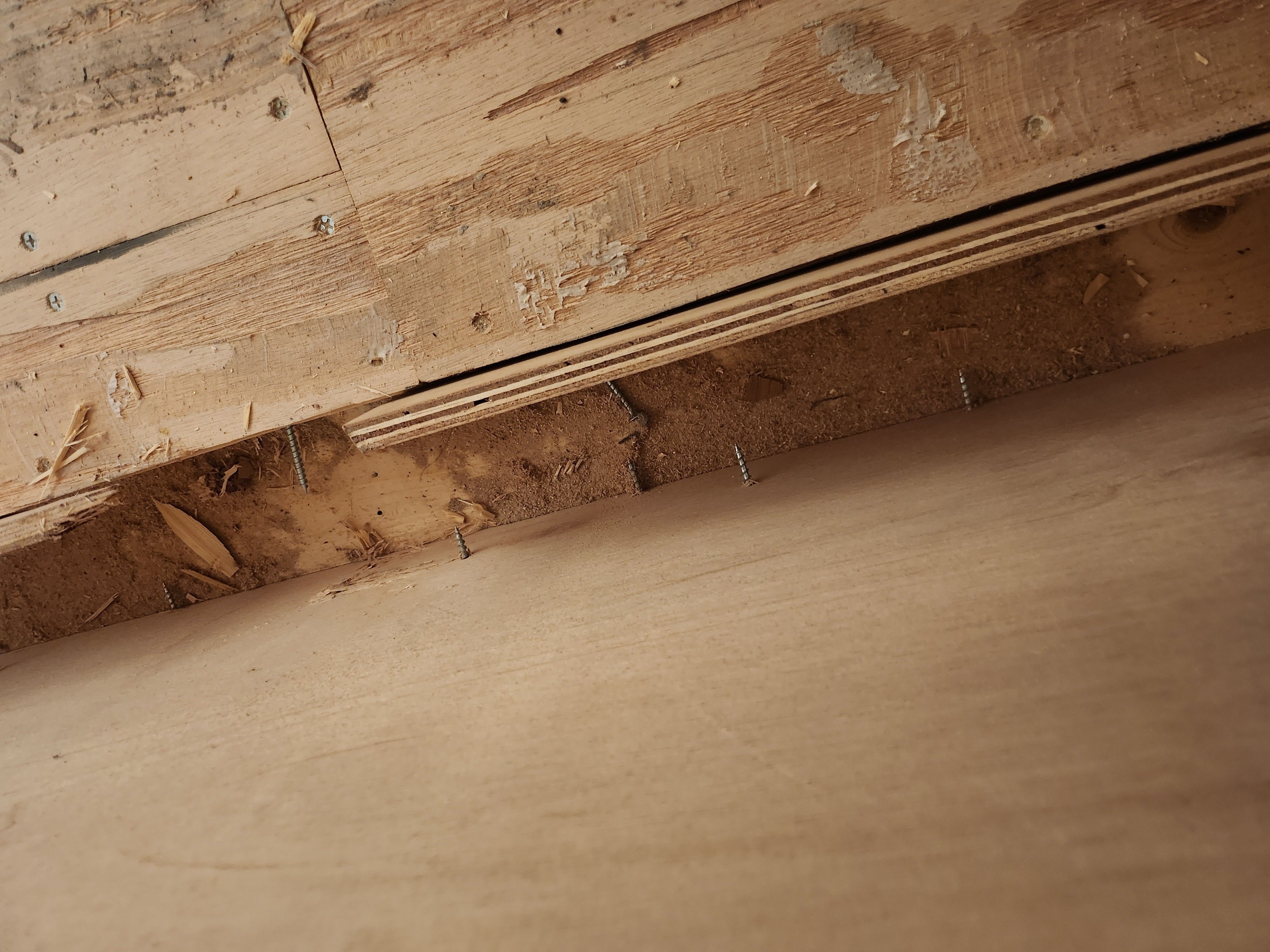 ↑こちらはカウンターを解体したところ、木くずはそのまま掃除もされずに、その上に