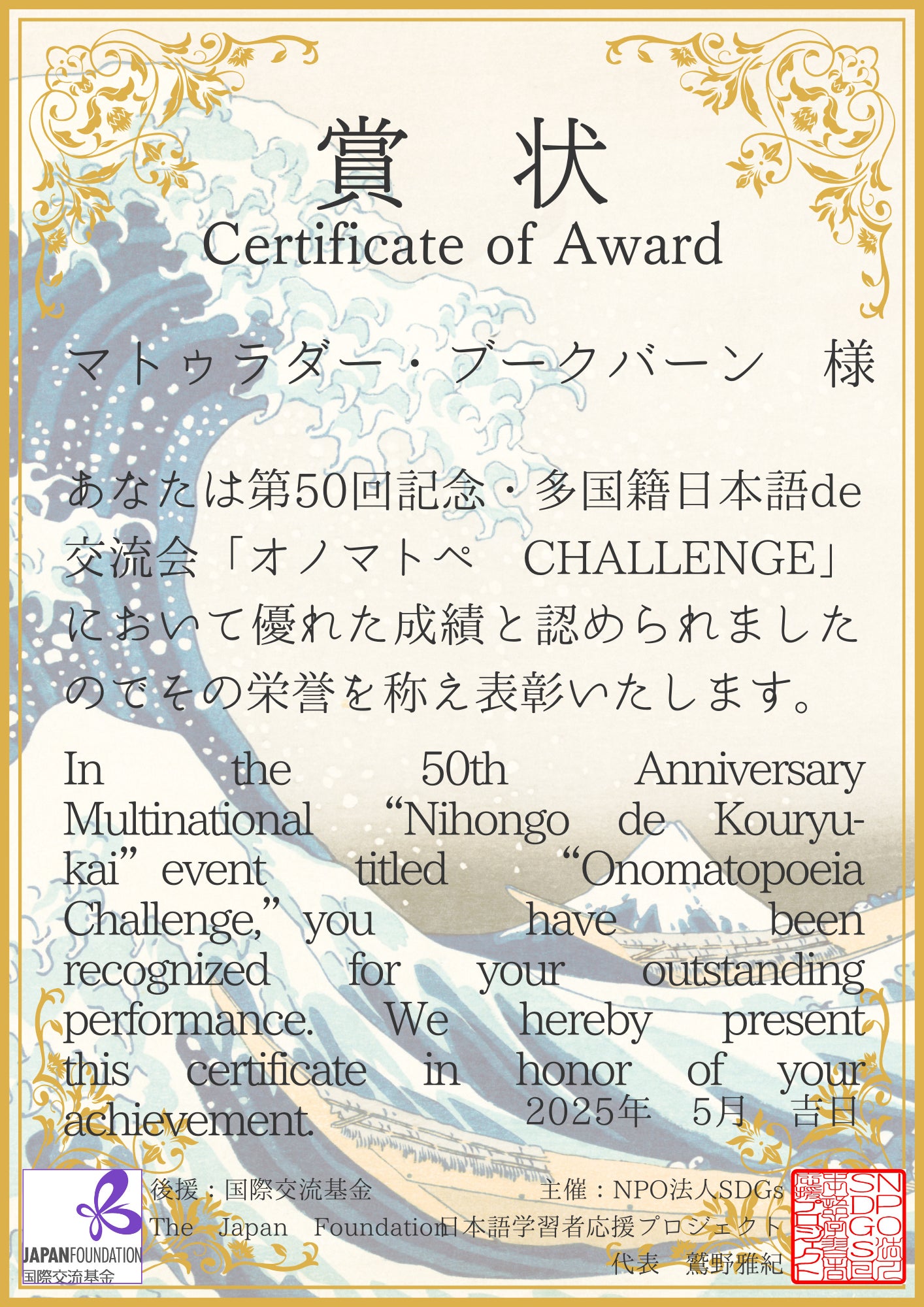 第50回記念・多国籍日本語de交流会「オノマトペ CHALLENGE」 にご支援いただき、誠にありがとうございました!