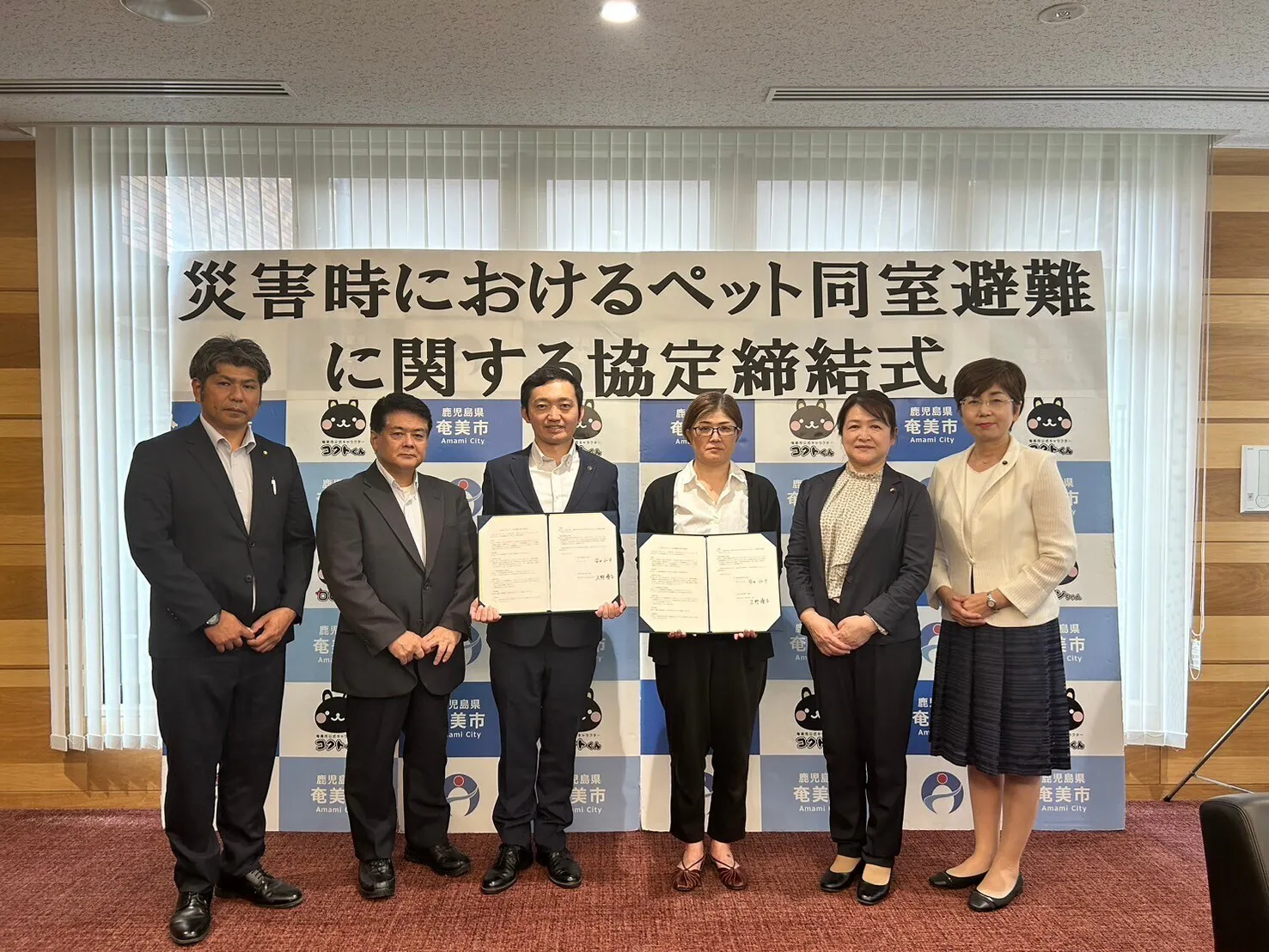 2024年5月の協定締結式、安田市長と奄美市議の皆様と
