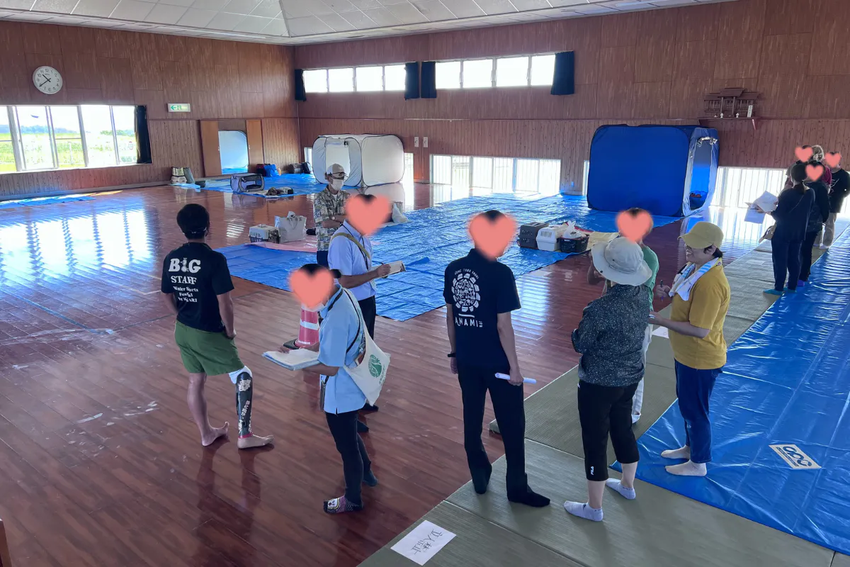 笠利町太陽が丘運動公園 武道館で行われたペット避難デモンストレーションの様子