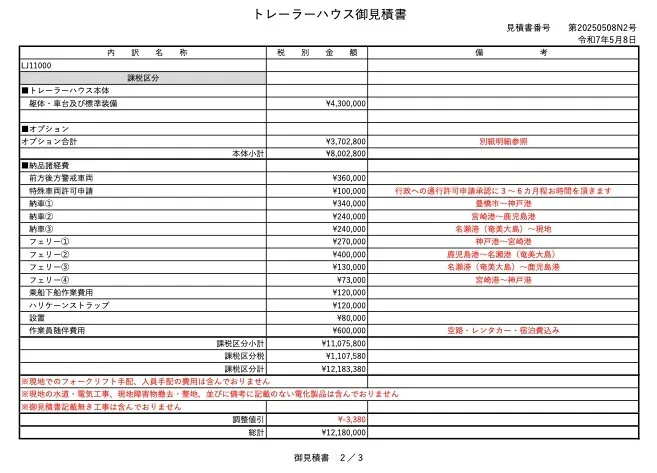 🚛 トレーラーハウス製造運搬費用が約1,200万円