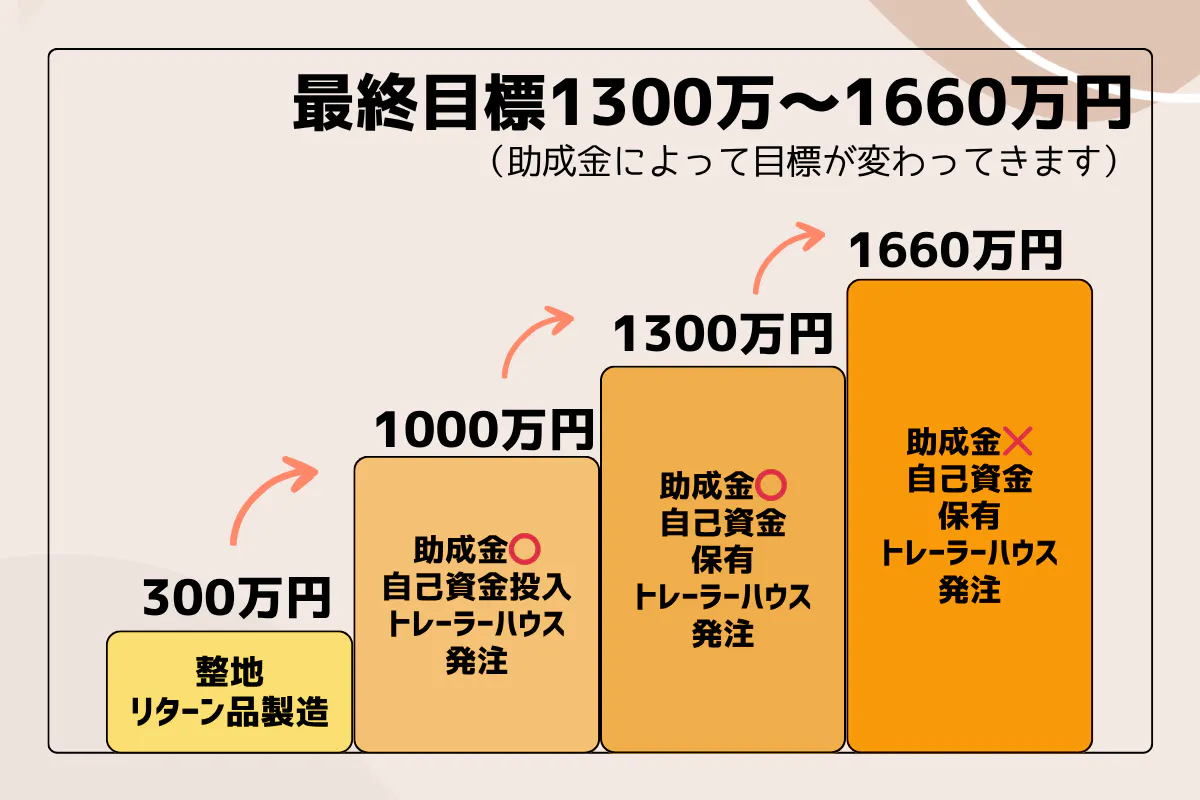 ・助成金有り⭕️ ➡️1300万➡️トレーラーハウス発注・運営費確保