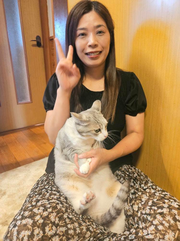 写真は、卒業猫のももちゃんと。