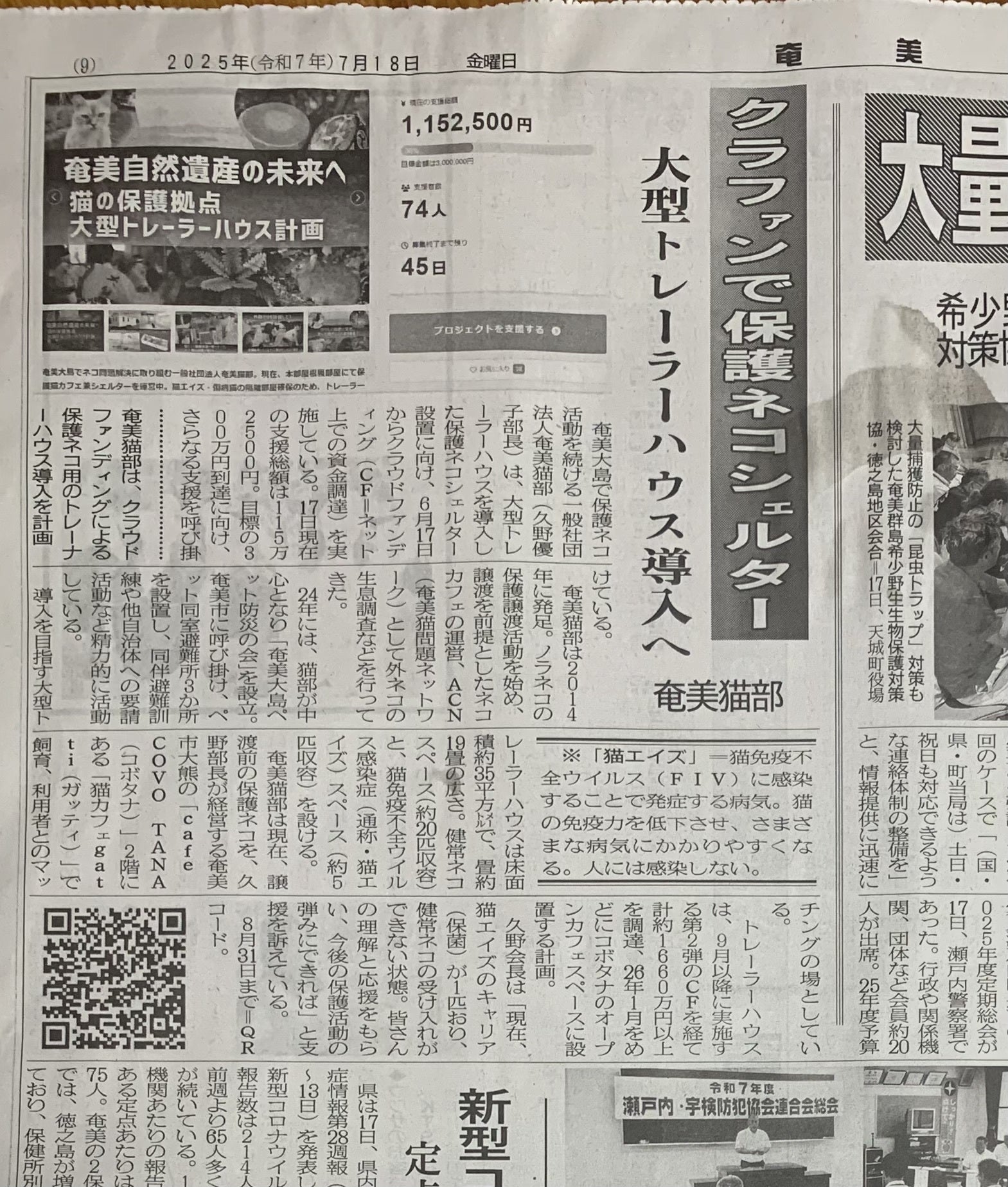 先日7月18日、地元紙「奄美新聞」さんご紹介いただきました。かなり大きく載せていただき感謝です。