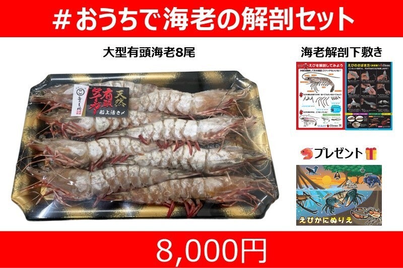 ⑥#おうちで海老の解剖セット(大きな有頭エビ8尾・海老解剖下敷き・塗り絵セット付)
