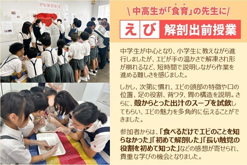 「私たちは命をいただいているんだ」 という実感が、食べ物を無駄にしない意識を育み、フードロスの解決へとつながる。さらに、エビのふるさと 「海」 にも思いを馳せ、海の環境を守ることの大切さを感じ取る。