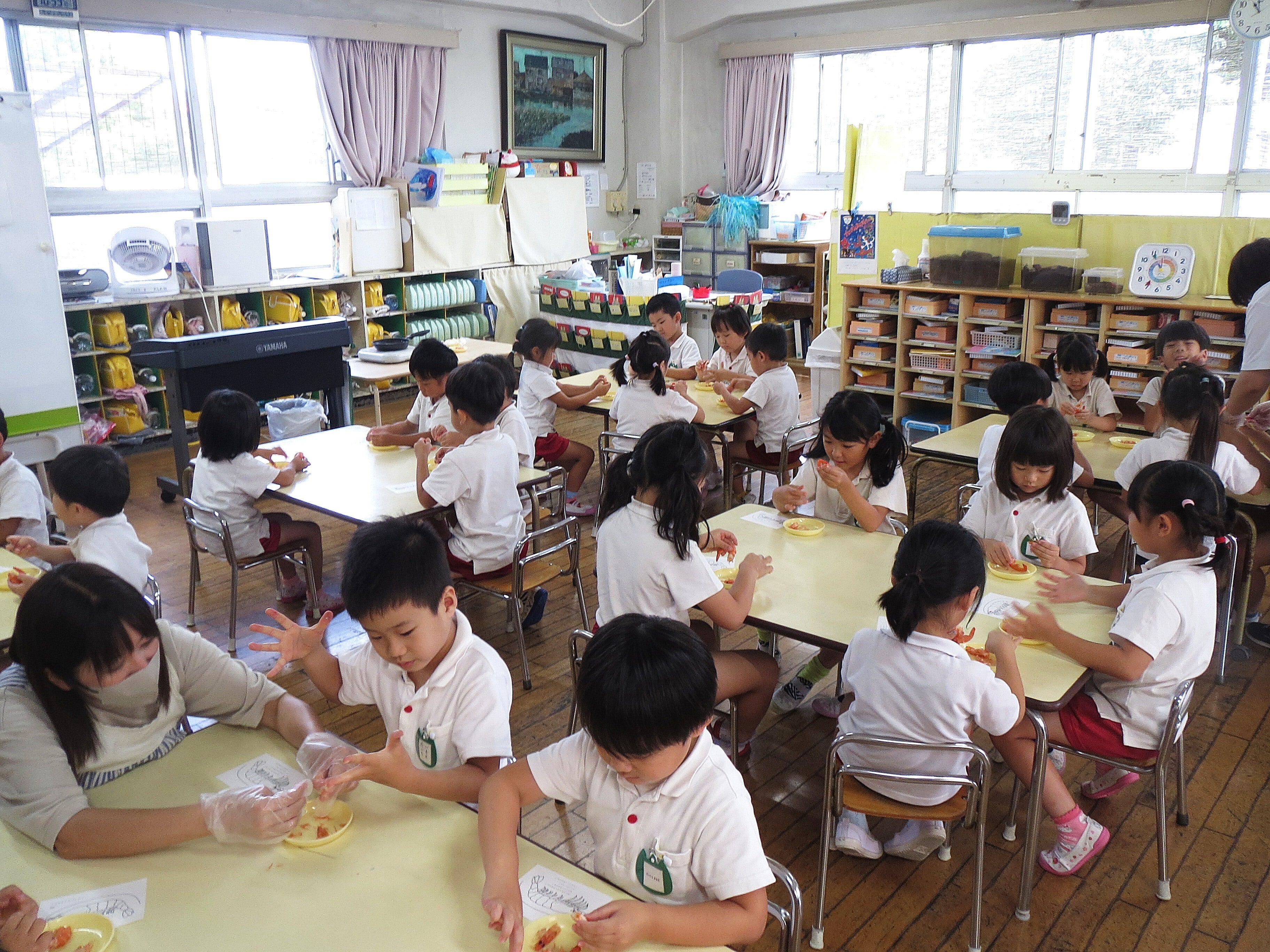 スーパーに並ぶ切り身・むき身しか知らない子どもたちは、それが生き物だったことの実感が湧きません。エビに頭や殻がついている姿をしっかり見る機会も多くはないようです。