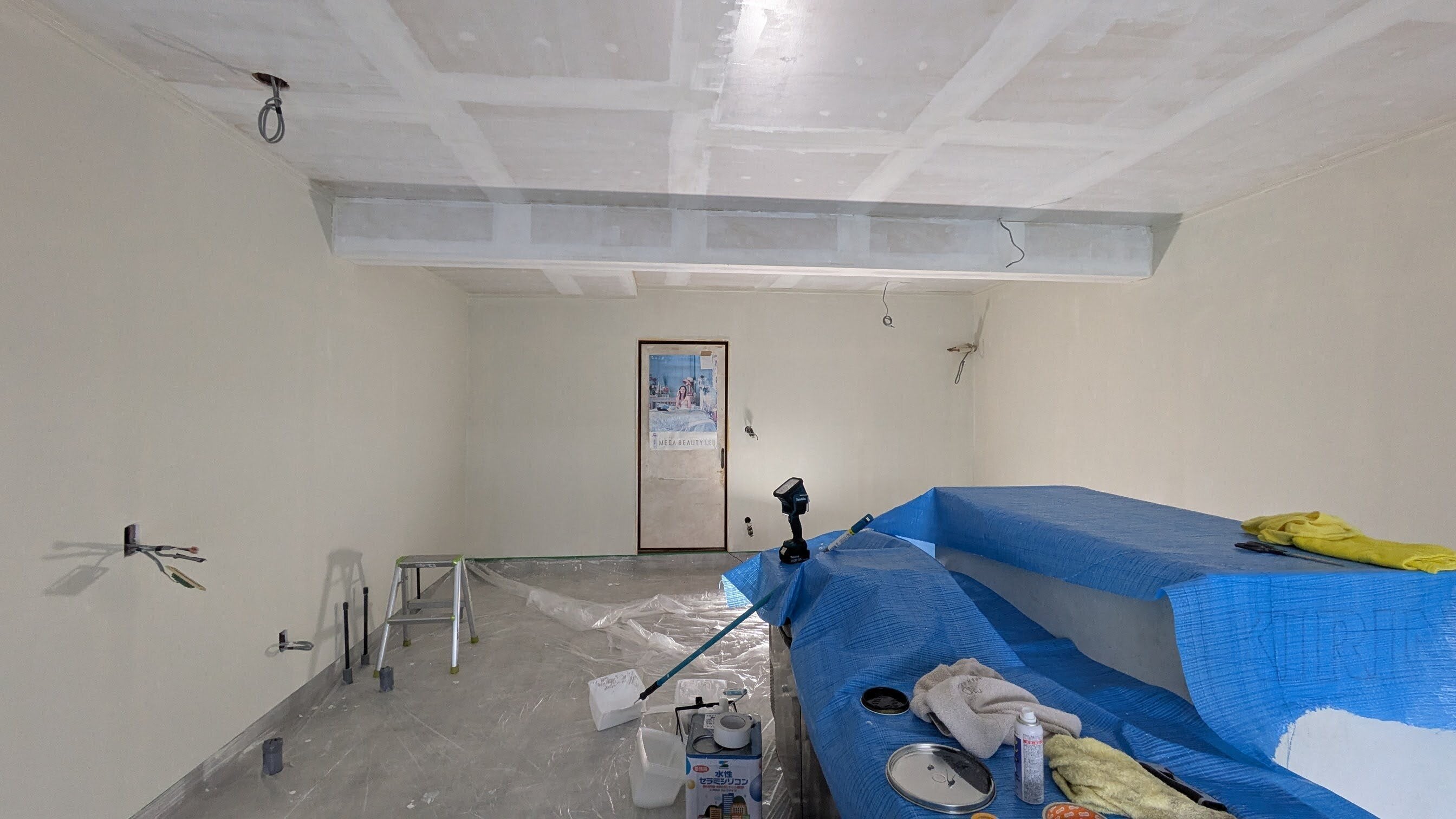 皆さん、こんにちは!工事もいよいよ仕上げに向けて進んでいます!現在、壁と天井の塗装を私たち自身で行っています。 費用を抑えながらも、こだわりの空間を作るため、心を込めて塗っています!